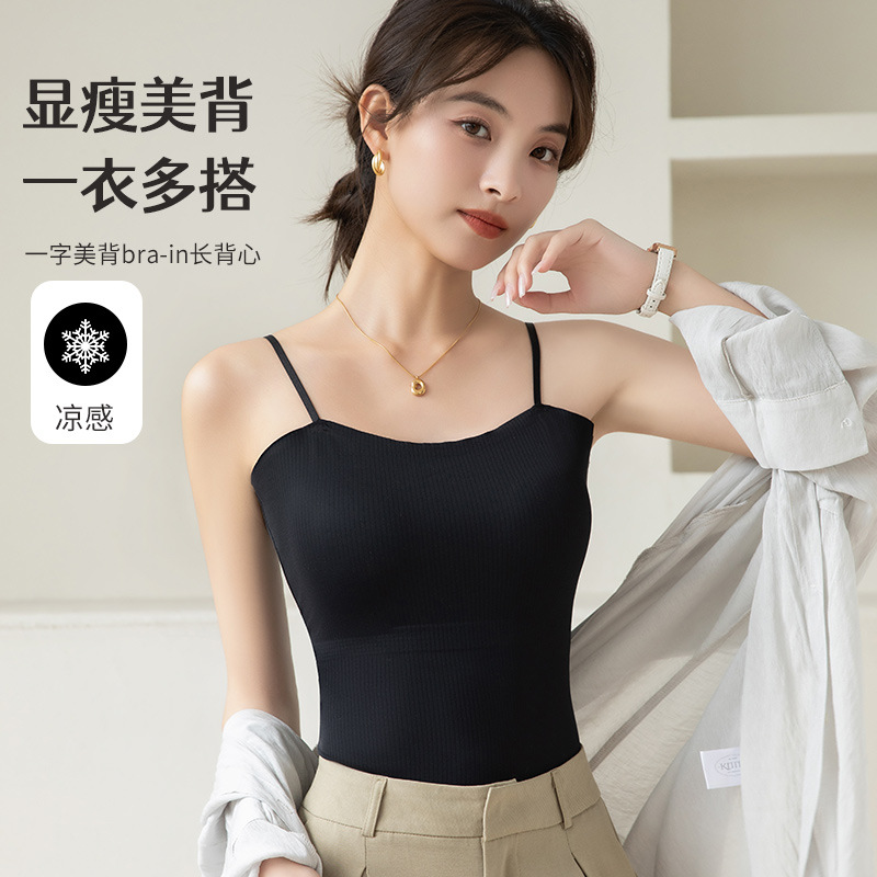 6631痕跡のない氷糸ストラップベストの女性は胸パッドの中に美背をつけて底を長くして長い上着の薄いタイプを着ている