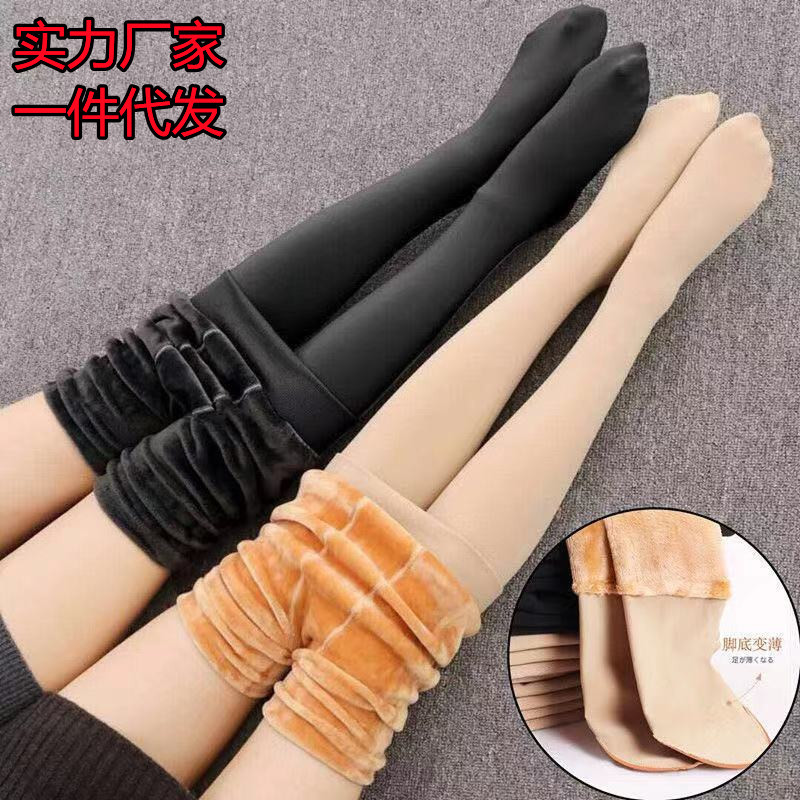 太ももの高い腰の肌の色を厚くして、ズボンの靴下の神器の秋冬の女性の外で肉色の保温のズボンを着ます。