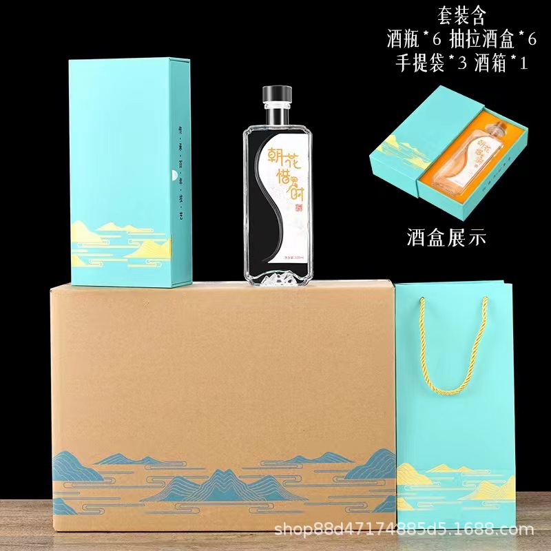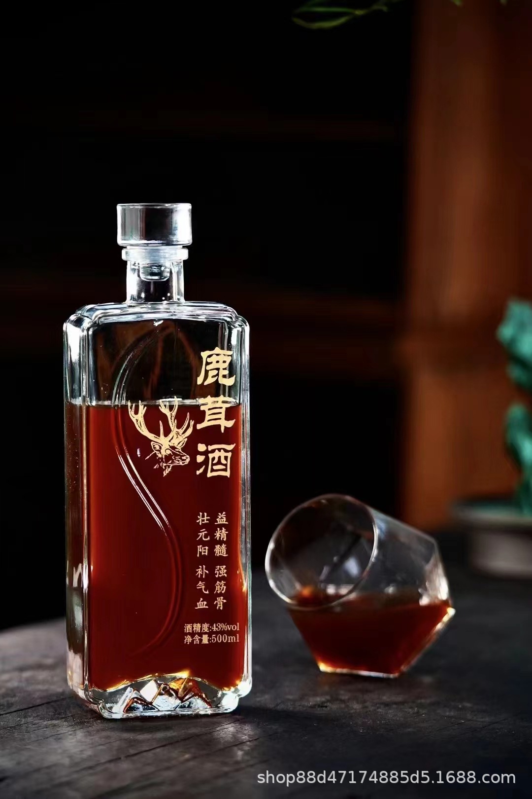 披露宴のお祝いは1斤入りの白酒瓶で結晶白料ガラス瓶500mlのガラス酒瓶の美しいセットを開けます。