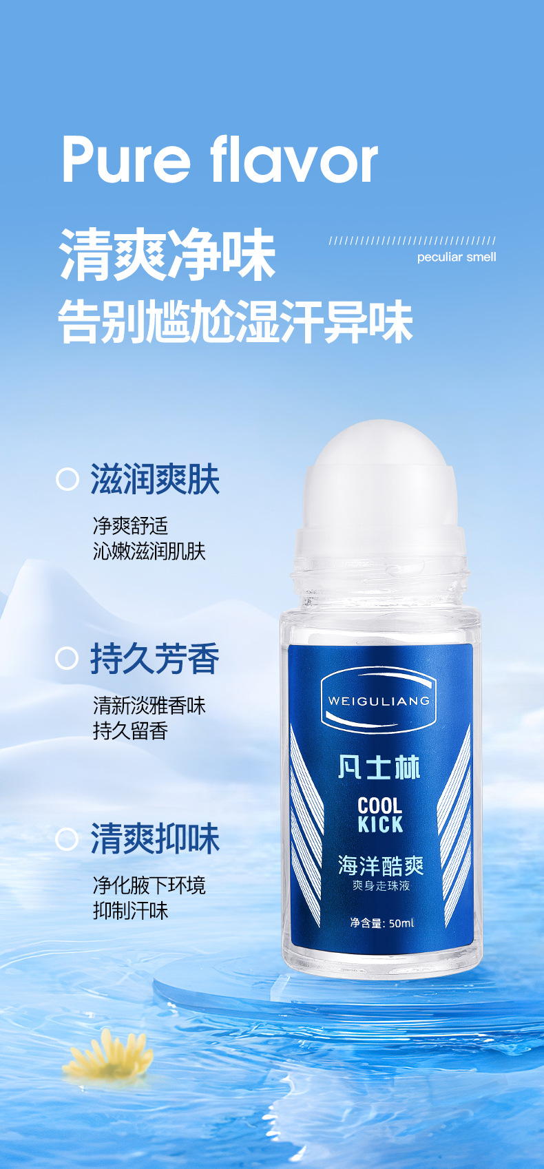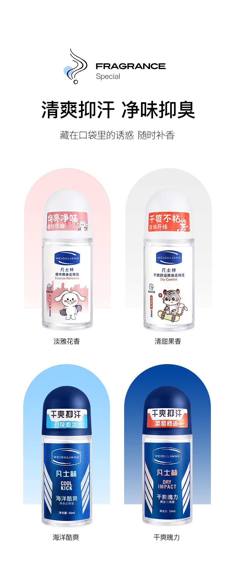 50ml男女止汗露走珠香体露滚珠增香古龙运动外贸出口英文跨境电商