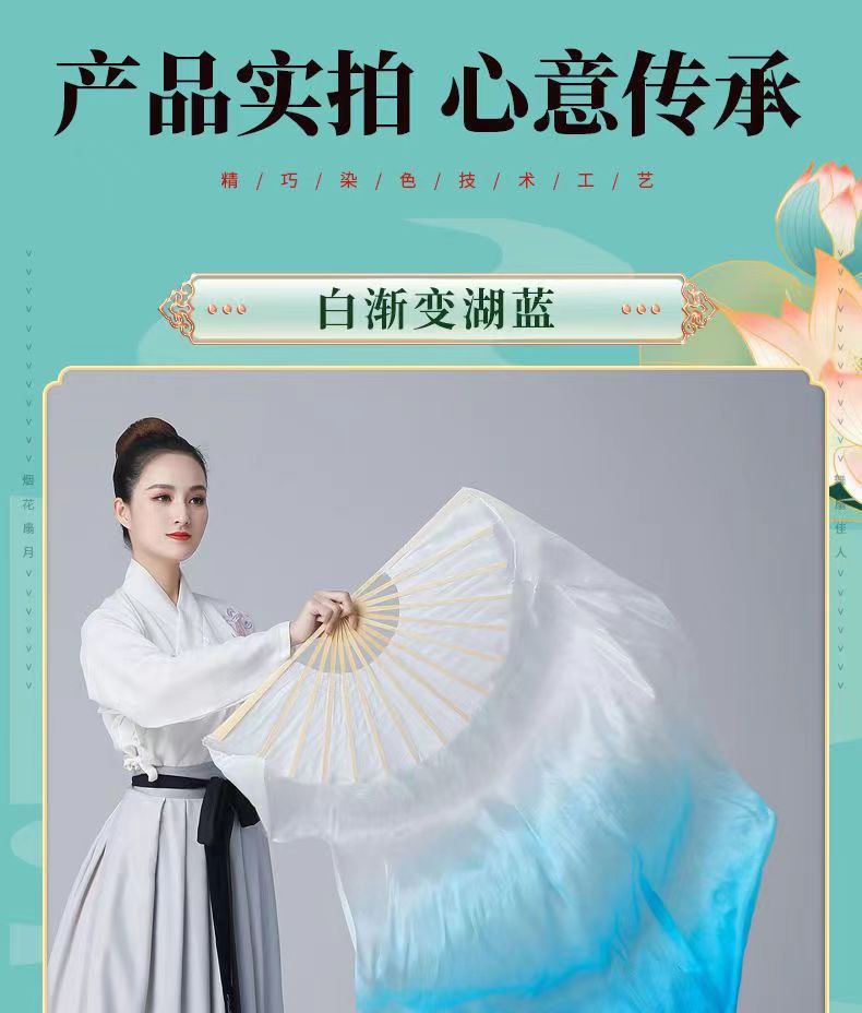 ダンス扇子、シルク扇子、古典舞踊、古風、湖青、グラデーション、大人、子供、美しい、膠州秧歌、広場舞踊