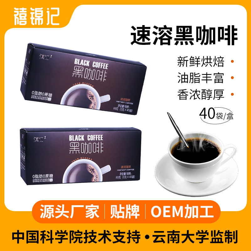 アメリカの濃い香りのインスタントコーヒーは、黒コーヒー80g/箱雲南省の小粒コーヒー青山ブラックコーヒー卸売りです
