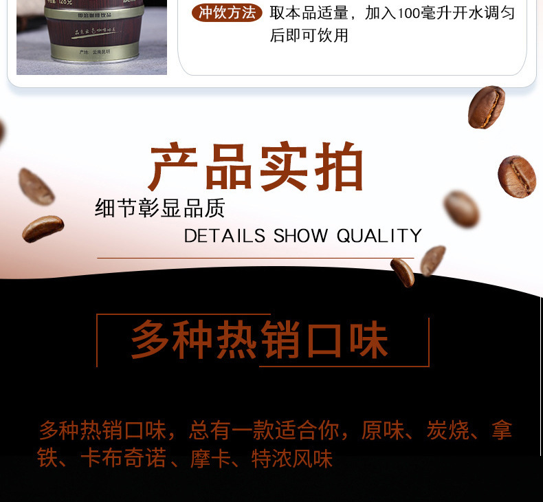 雲南小粒コーヒーインスタントコーヒー粉ラテ特濃128g/充填多種の味オプションメーカー卸売り