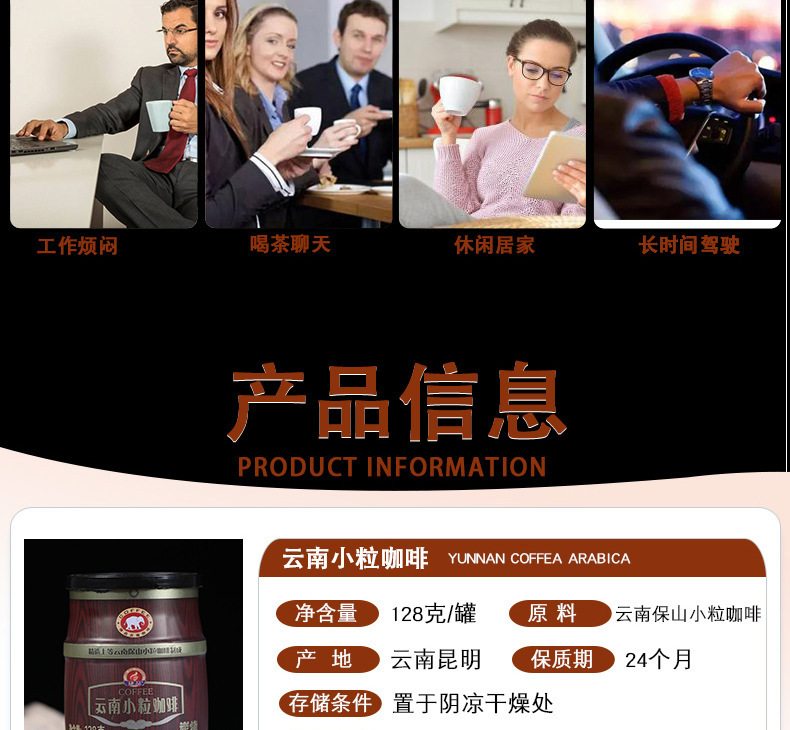 保山小粒コーヒー粉クラシック味128グラム/缶入り特濃雲南小粒コーヒー三合一インスタントコーヒー