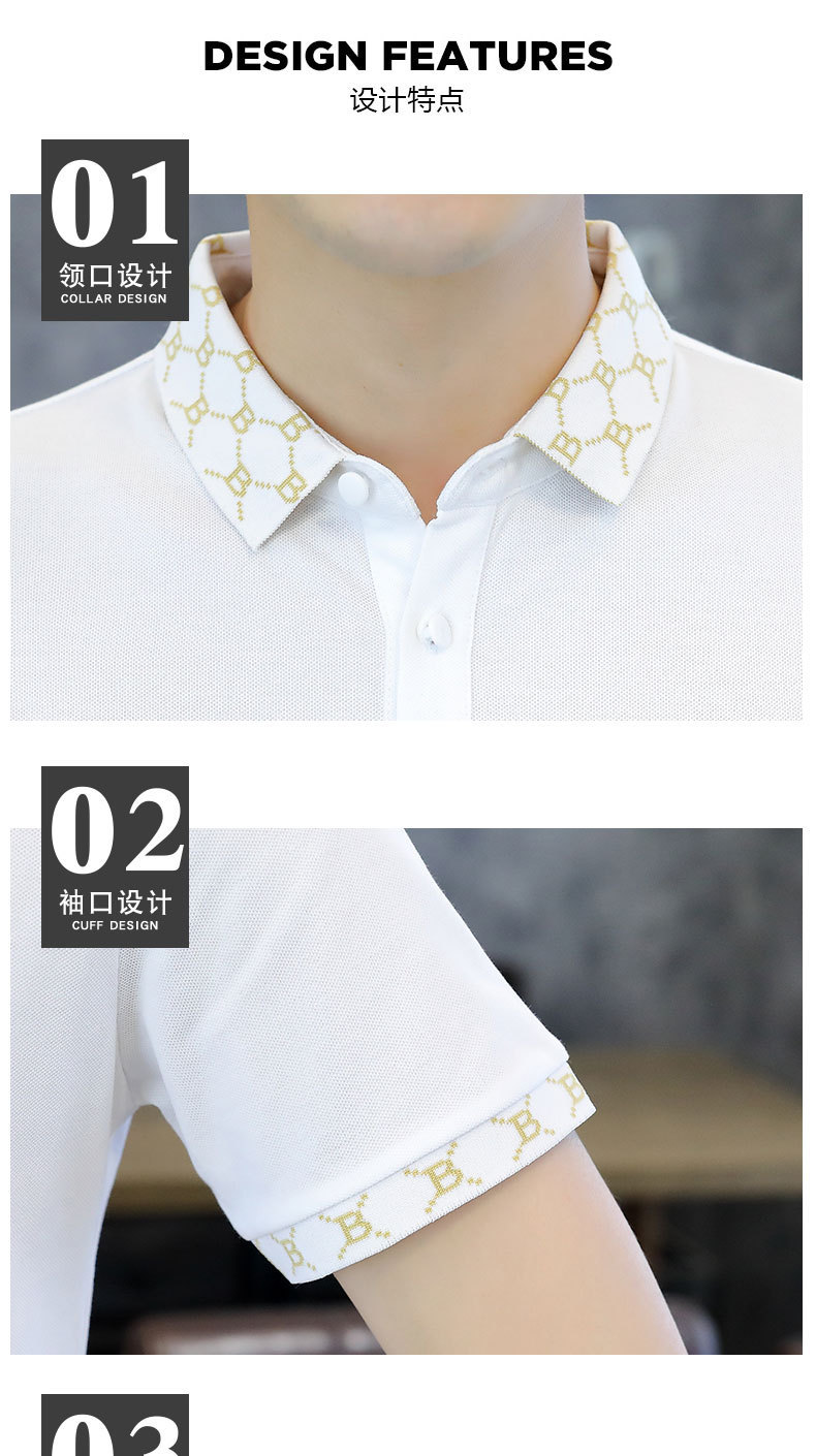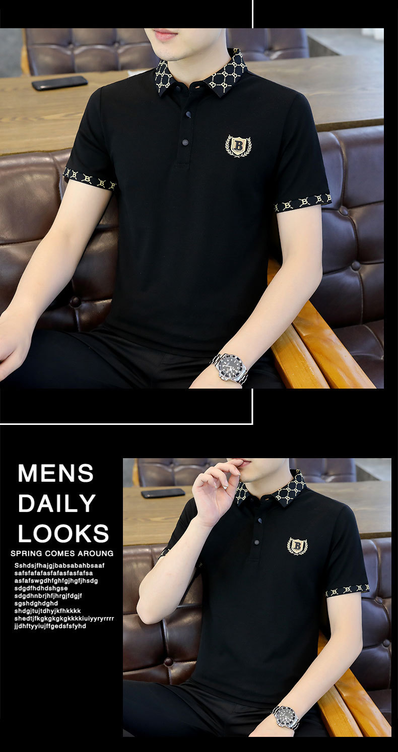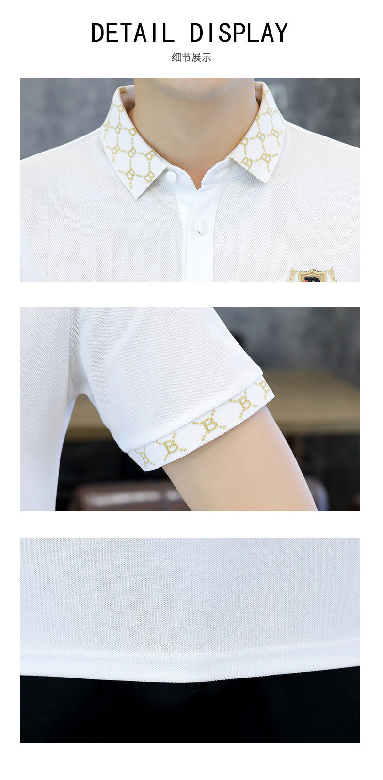 メンズポロシャツ高级感2024夏新作トレンド百合ファッションカジュアル薄手半袖青年折り襟