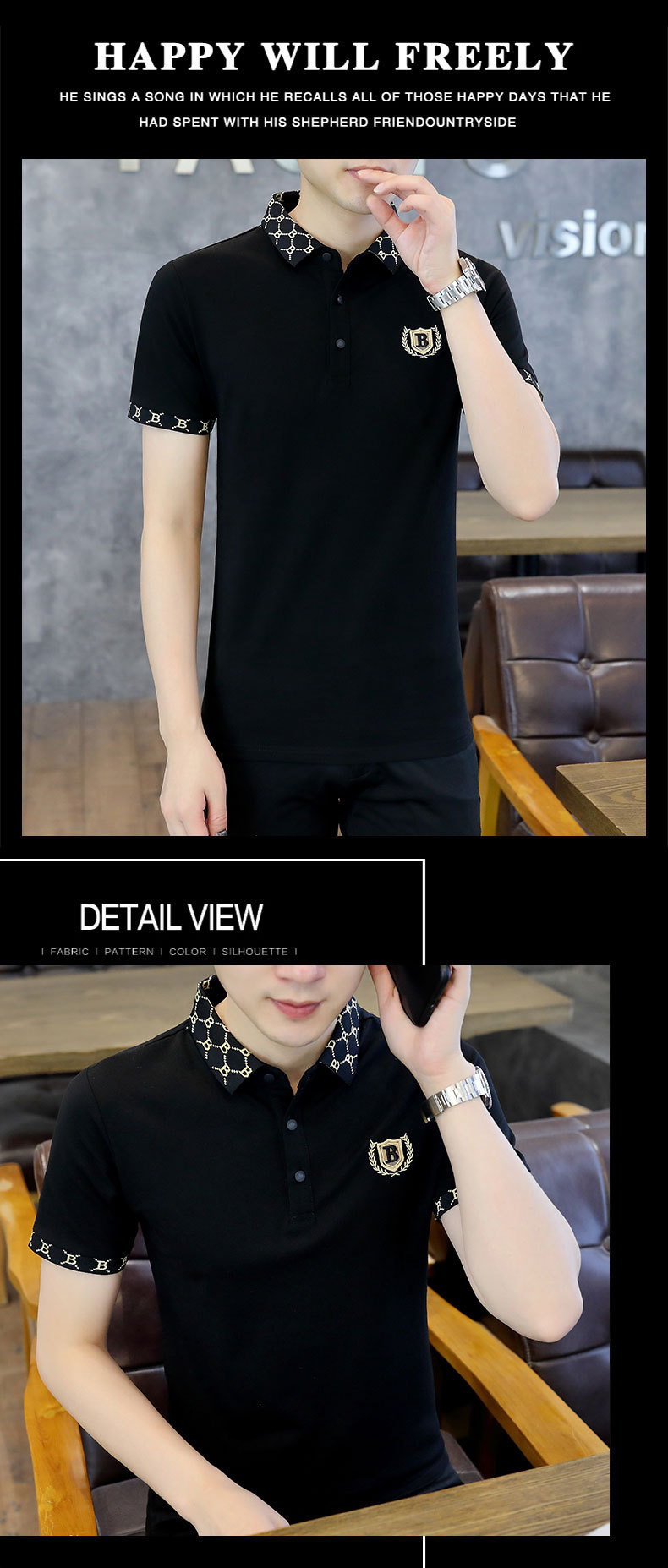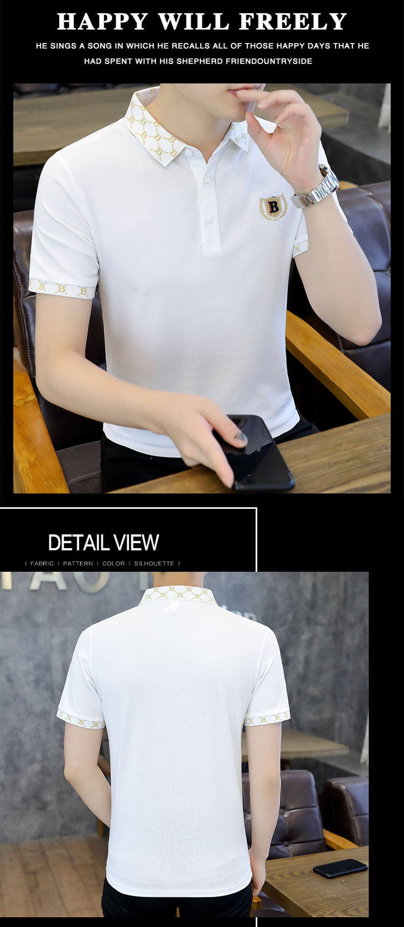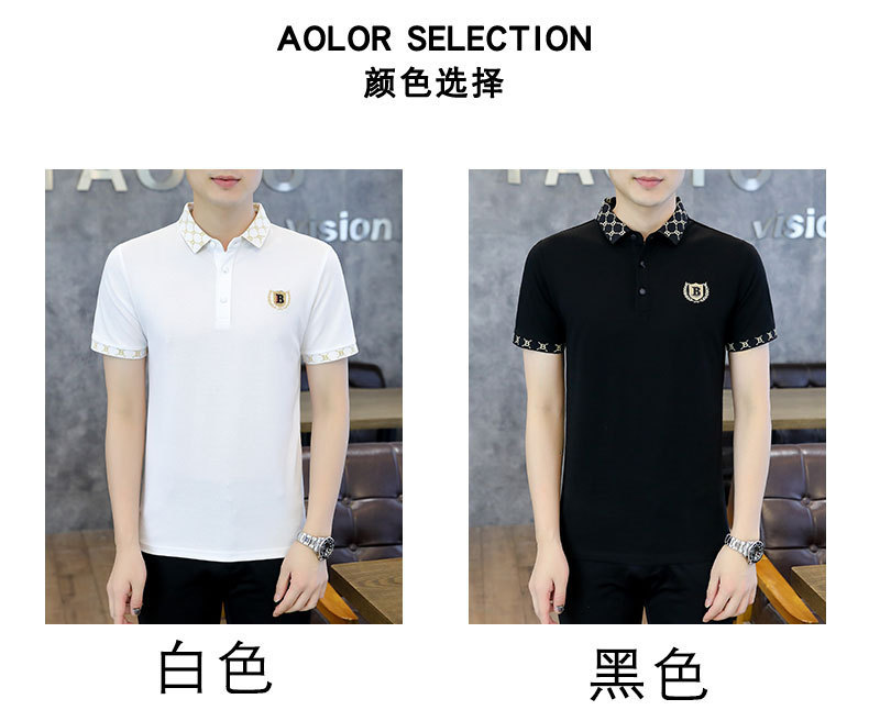 メンズポロシャツ高级感2024夏新作トレンド百合ファッションカジュアル薄手半袖青年折り襟