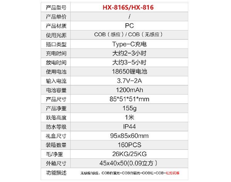 跨境户外运动头灯便携LED头戴式头灯长续航锂电灯多功能感应头灯