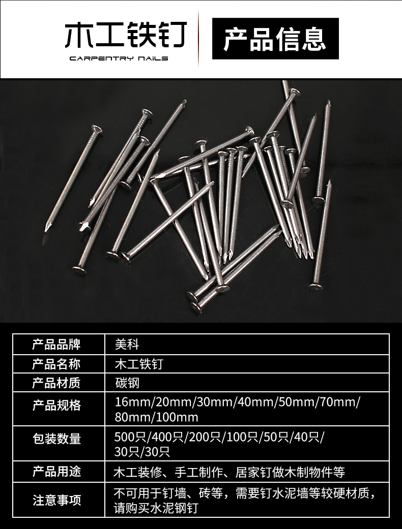 铁钉大全 木工钉建筑钉 手工小细钉家用圆钉洋钉寸寸寸木板钉