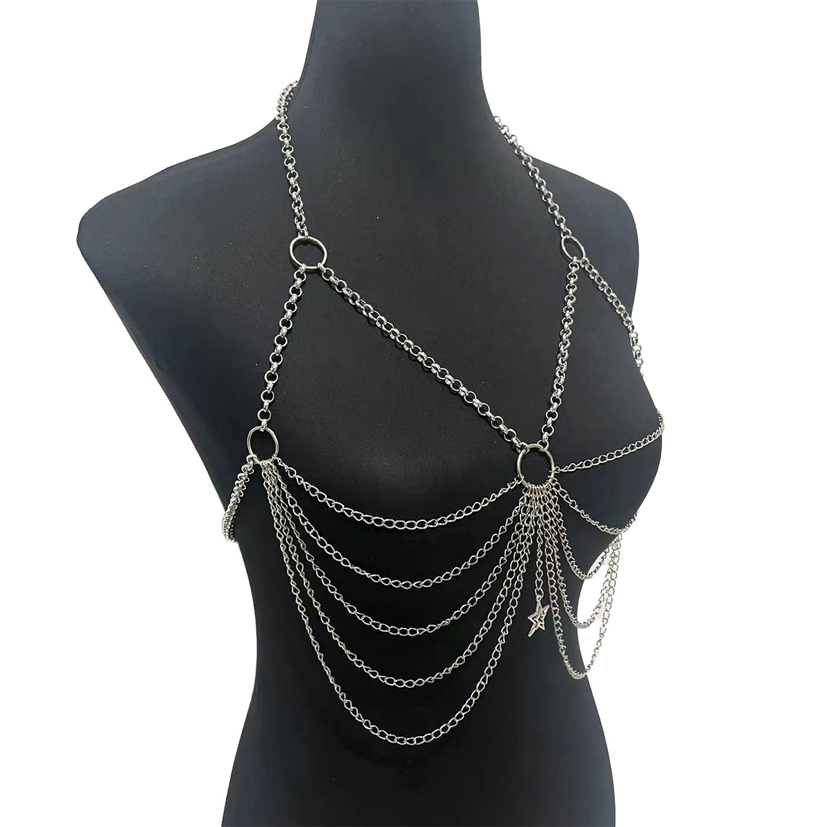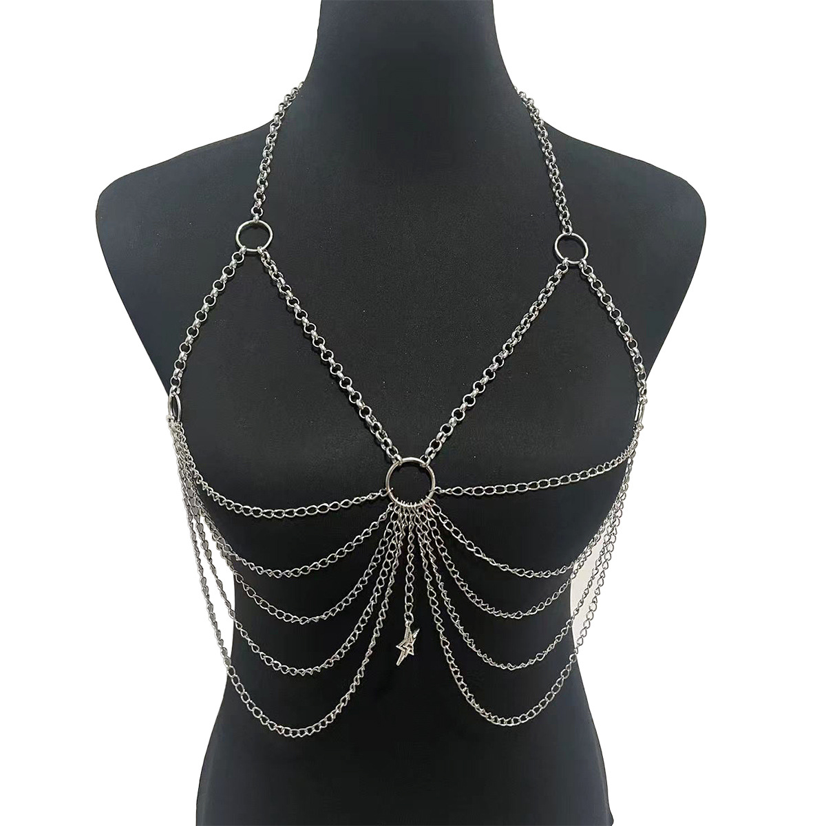 欧米でよく売れている金属チェーンの円環と首環の多層流蘇セクシーボディチェーンdl 0017
