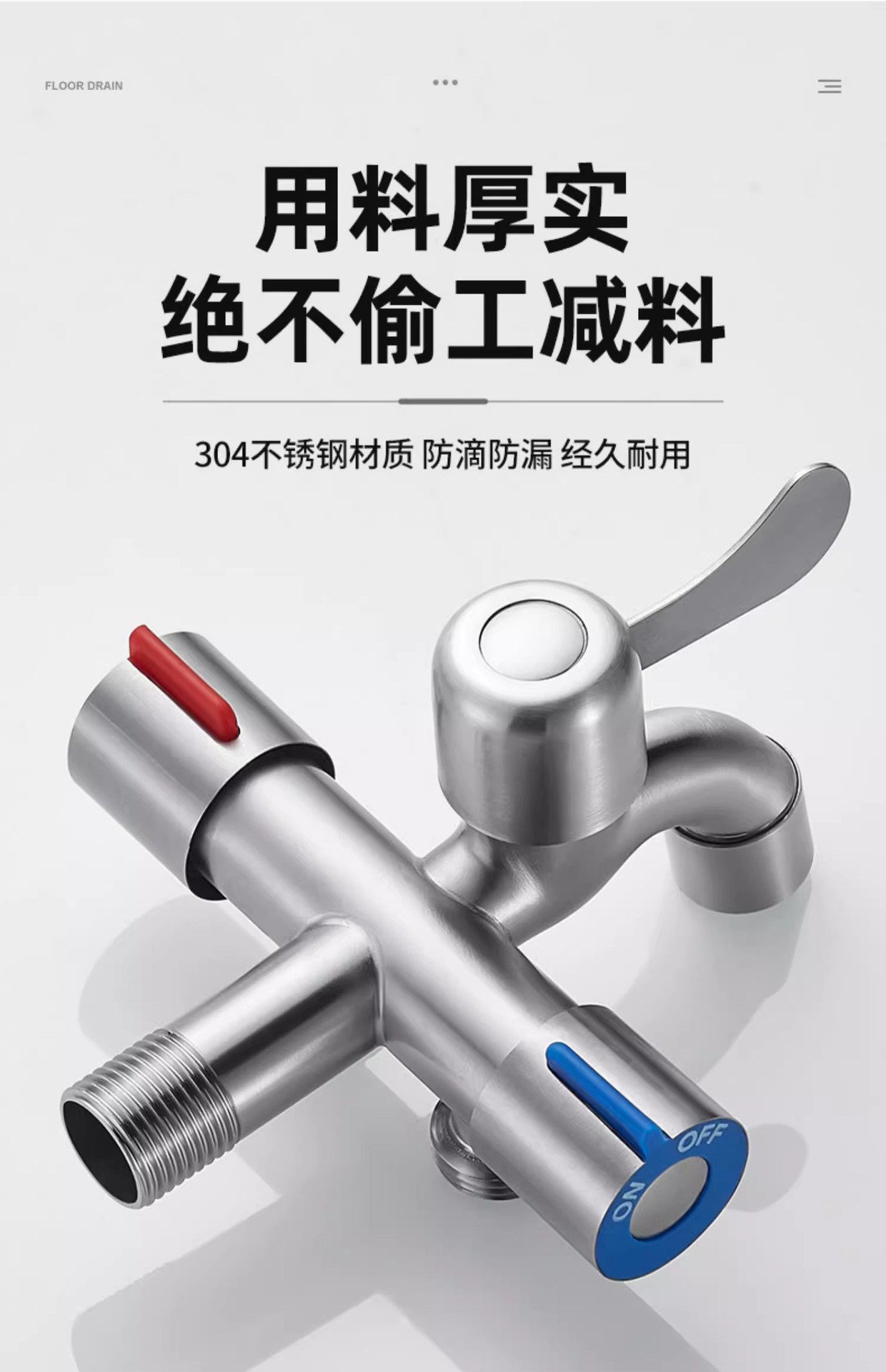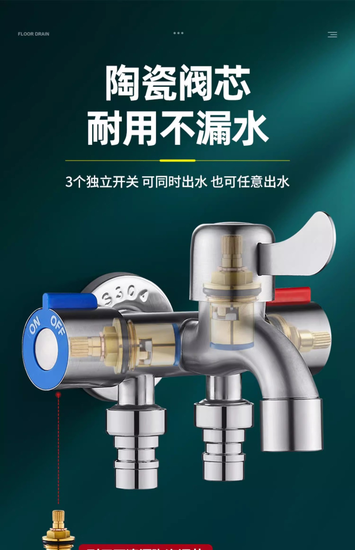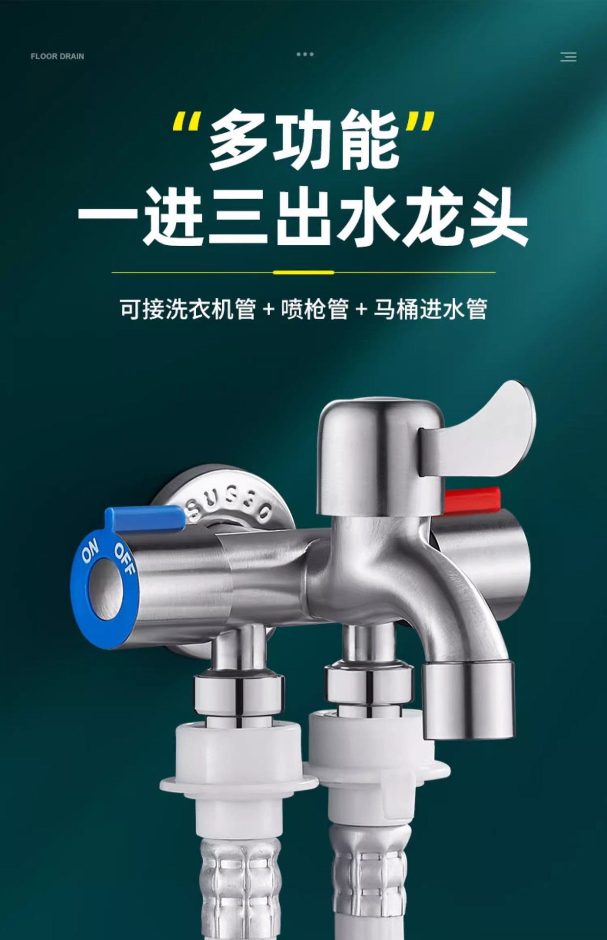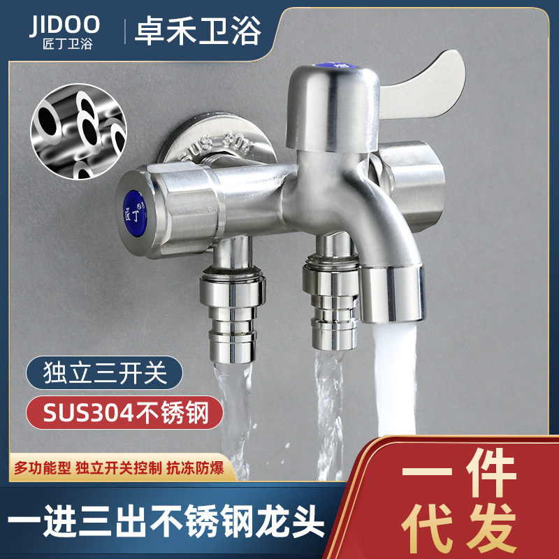 ステンレス製ワンインスリーアウト洗濯機蛇口、バルコニー用モップ池スリーウェイトイレ多機能スリーコントロール分岐器