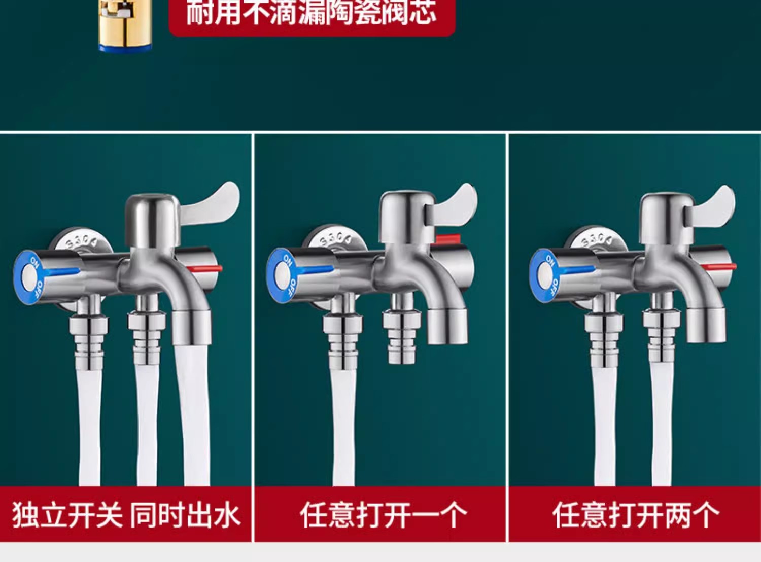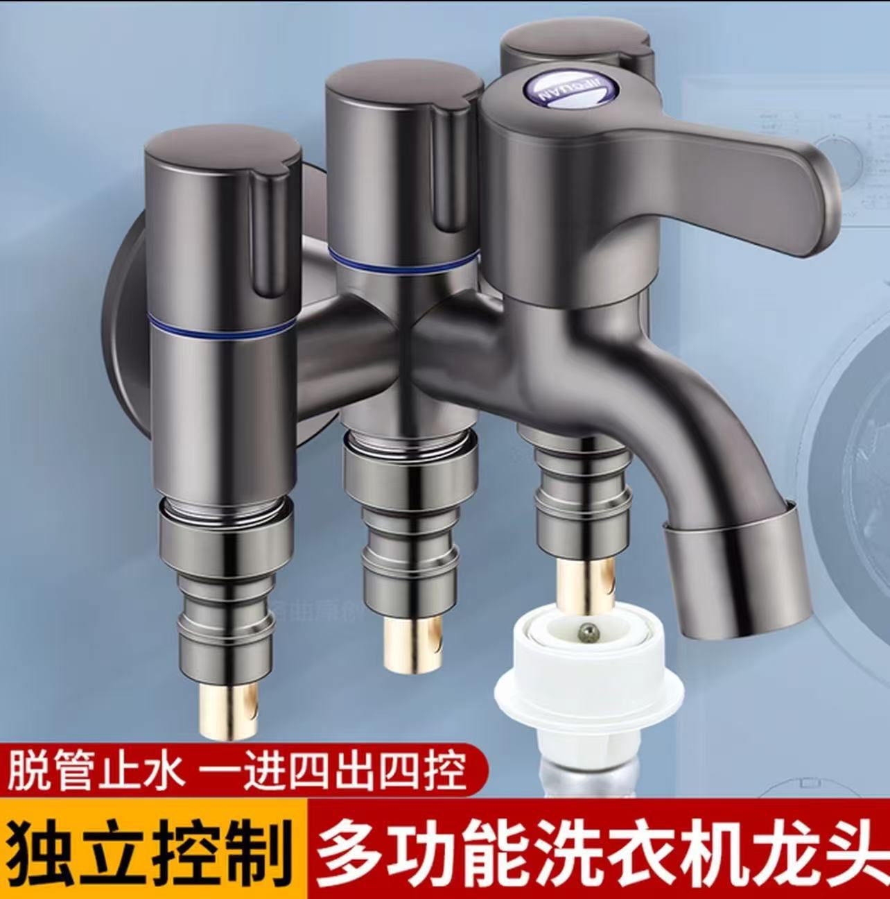 304ステンレス製一進三出三制御洗濯機蛇口多機能四路分水器一分三角弁
