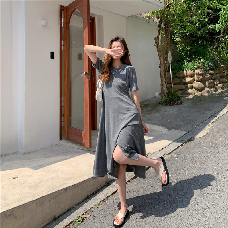 韓国版カジュアルシンプルワンピース夏の新型ビッグサイズのゆったりしたロングタイプの膝太りmm妊婦の寝スカート女性のファッション