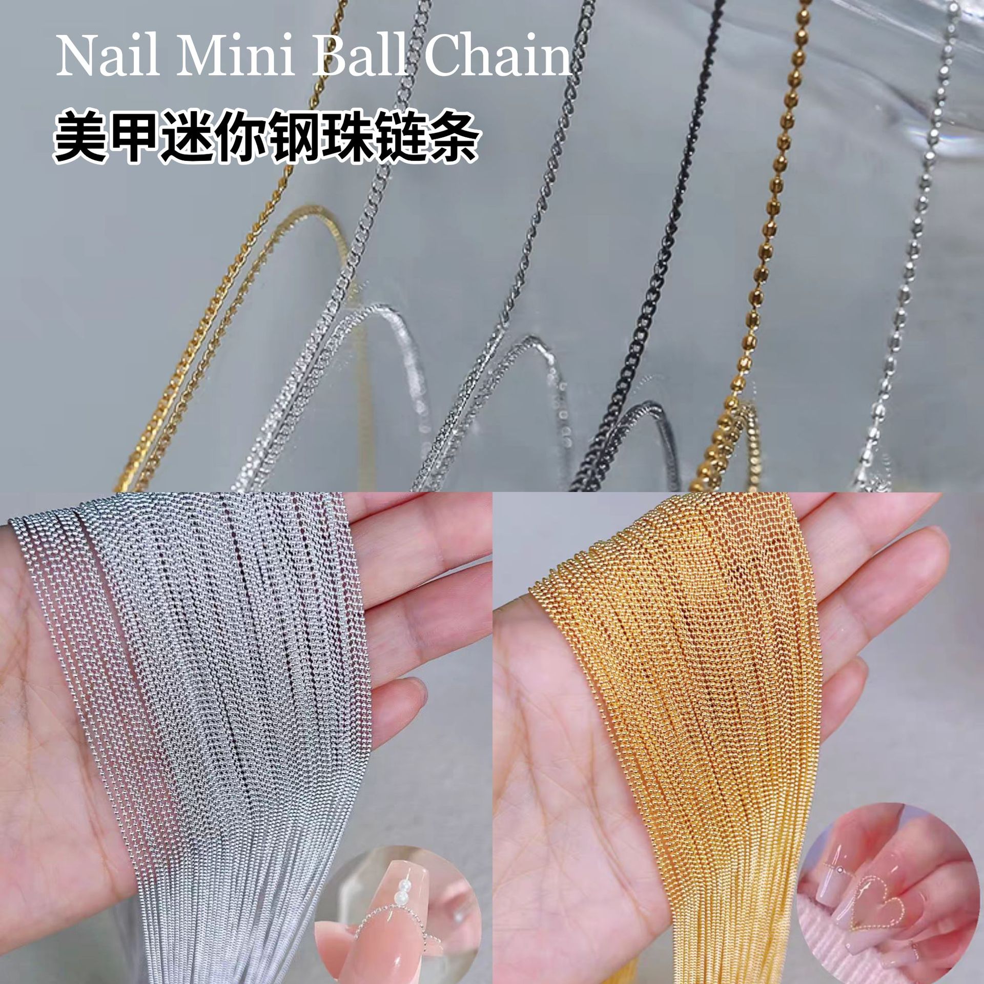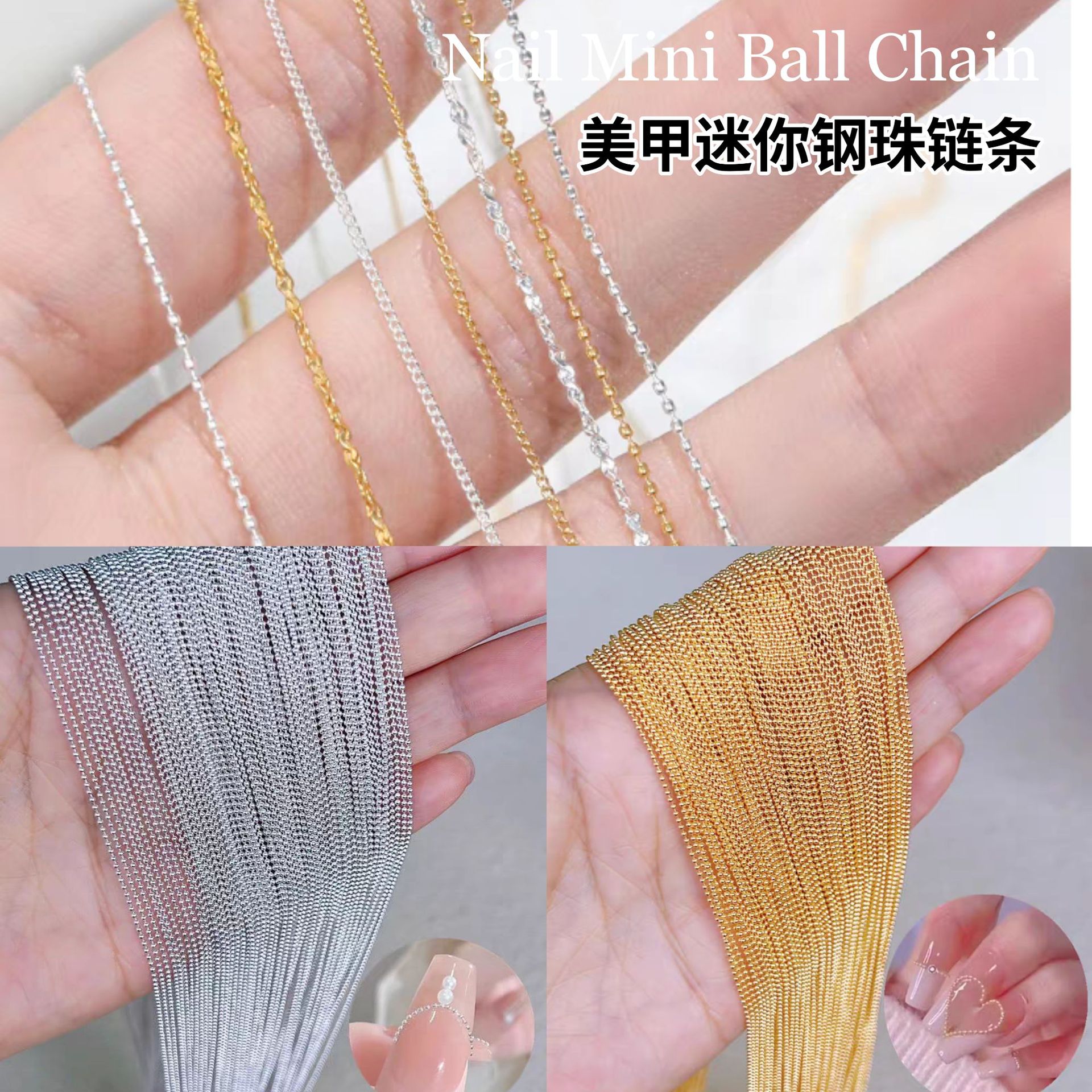 日本マニキュア鋼ビーズ細いチェーンジュエリーゴールドとシルバーのチェーンマニキュアジュエリー金属立体ネイル装飾アクセサリー