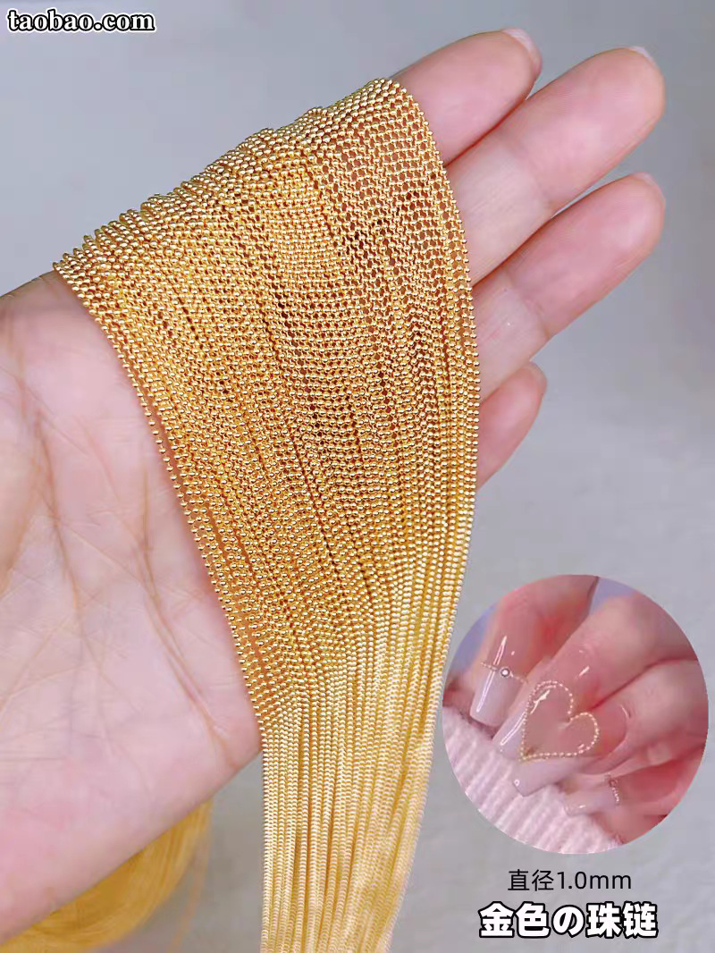 整卷细珠链美甲链条饰品跨境爆款0.8MM金属小钢珠链条穿戴甲配饰