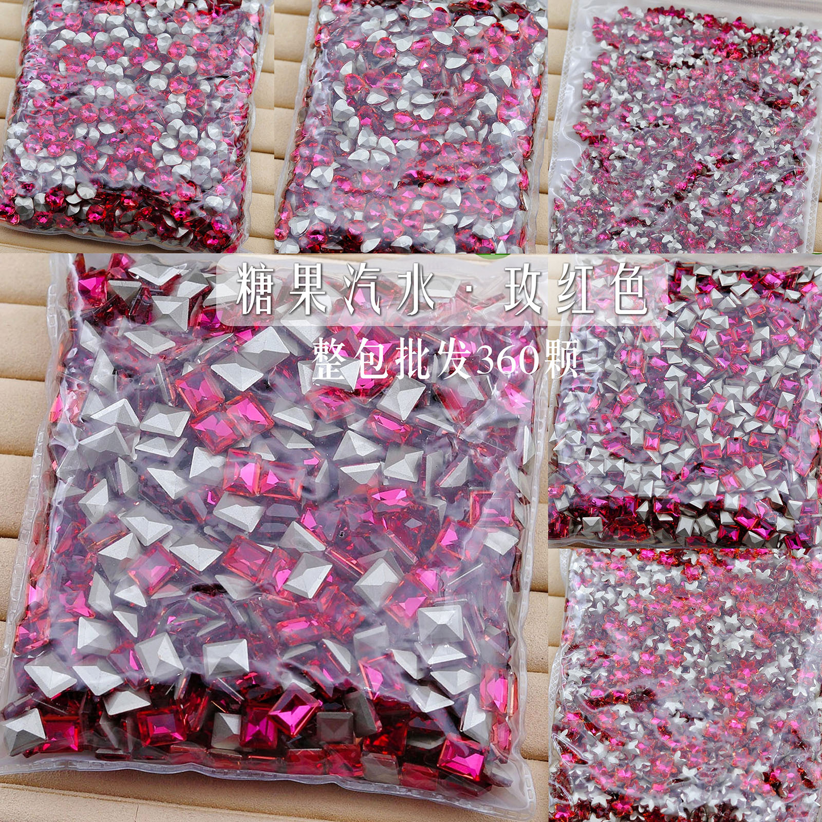 卸売りは360個の水晶桜花粉の先のドリルの大きい小さいサイズの水滴の愛の歪んだ心の越境のネイルアクセサリーを包みます。