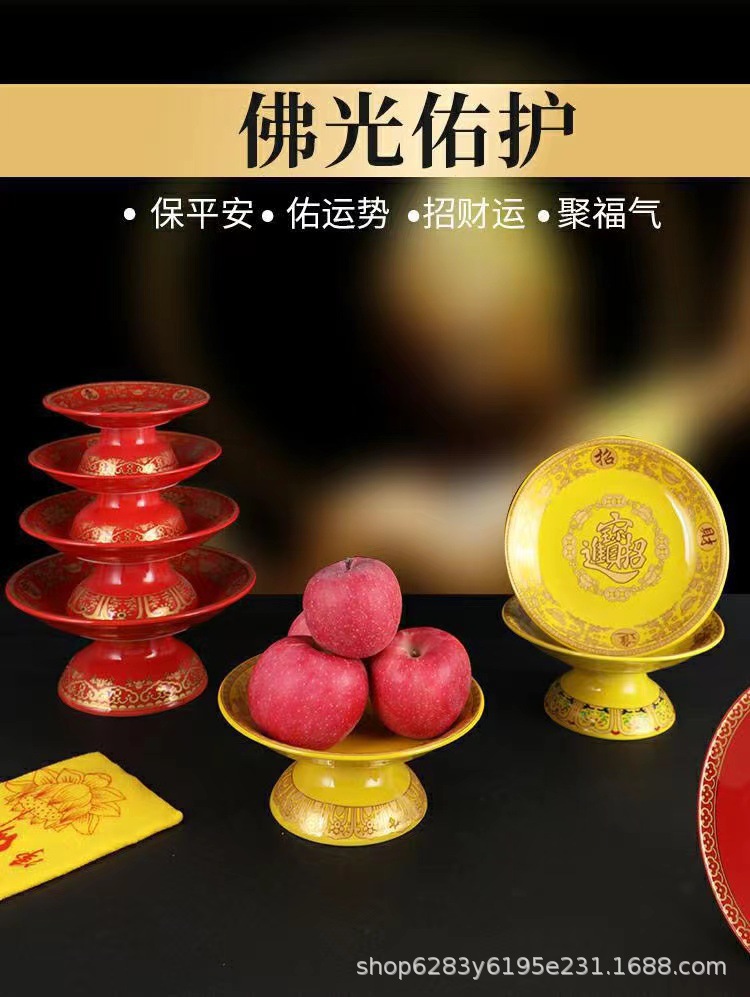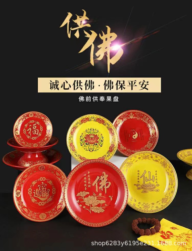 仕様 福フルーツプレート(イエロー),唐彩蓮の果物皿(黄色),仏様用フルーツプレート(黄),仙子の果実皿(黄色),道教の果物皿(黄色),福フルーツプレート(赤),唐彩蓮の果物皿(赤),仏様の御供えフルーツプレート(赤),仙子の供物フルーツプレート(赤),道教の果物皿(赤)