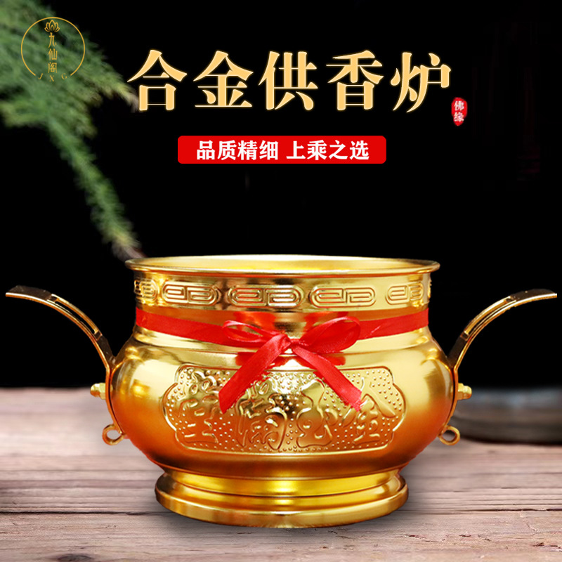 香炉合金メッキ黄陶磁器香炉家庭用上香財神観音供仏香薫炉拝神招財焼
