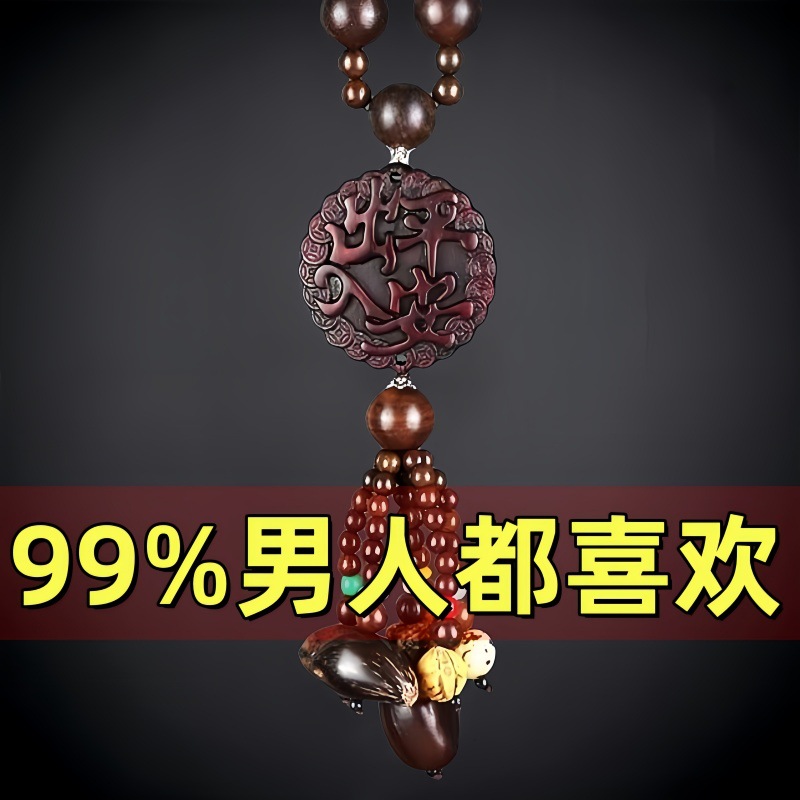 车载桃木汽车挂件车用男士高级装饰品小车新款后视镜平安吊饰