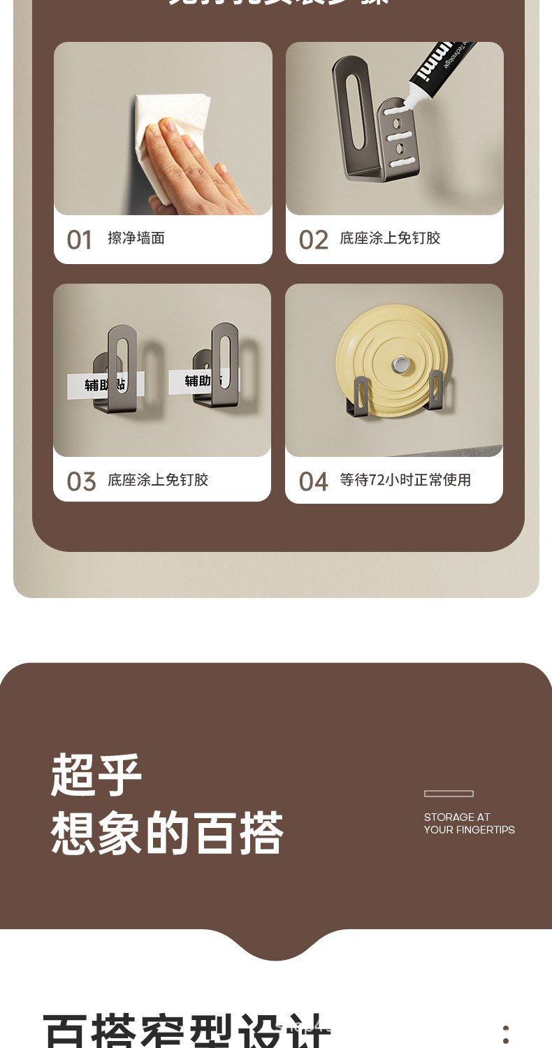 ステンレス収納壁掛けモップフックハンガー穴なし神器トイレモップクリップ強力ビスコースフック