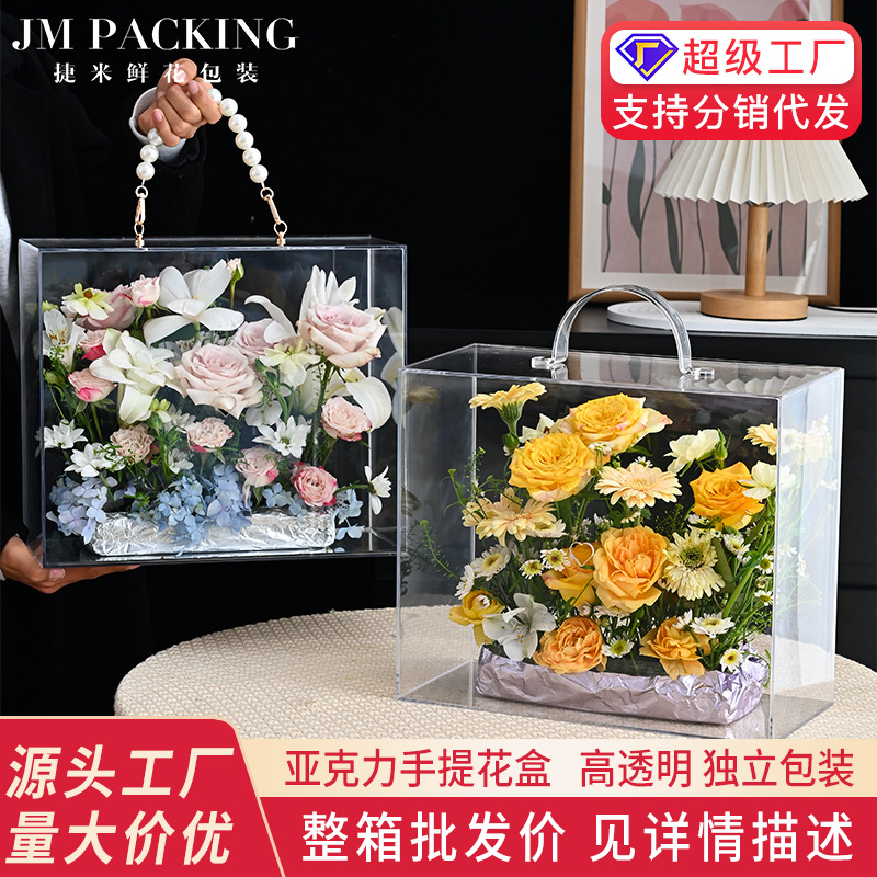 アクリル手提げ花箱ネット赤永生花金持ち花束の材料花屋資材用品花ギフトボックス