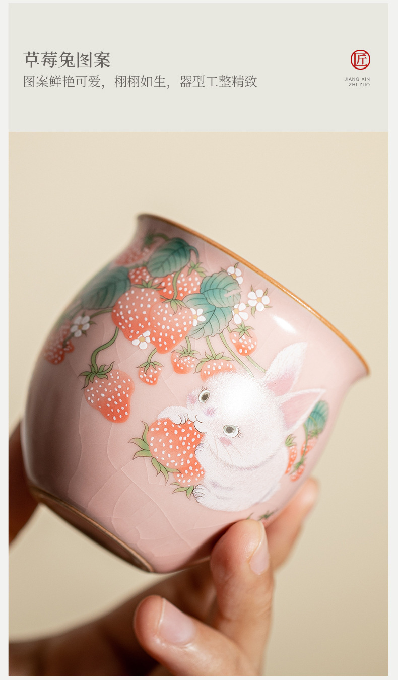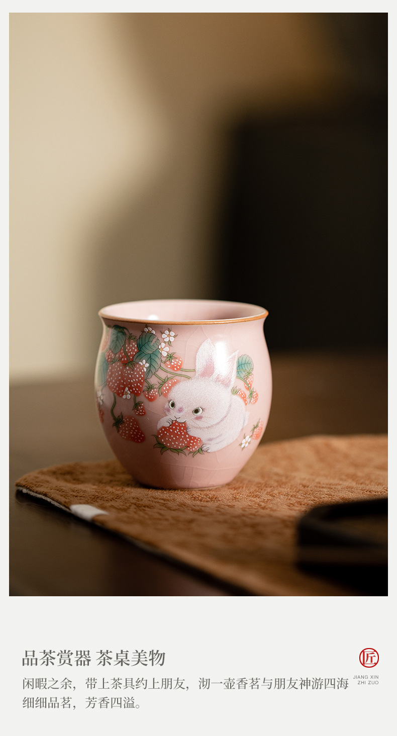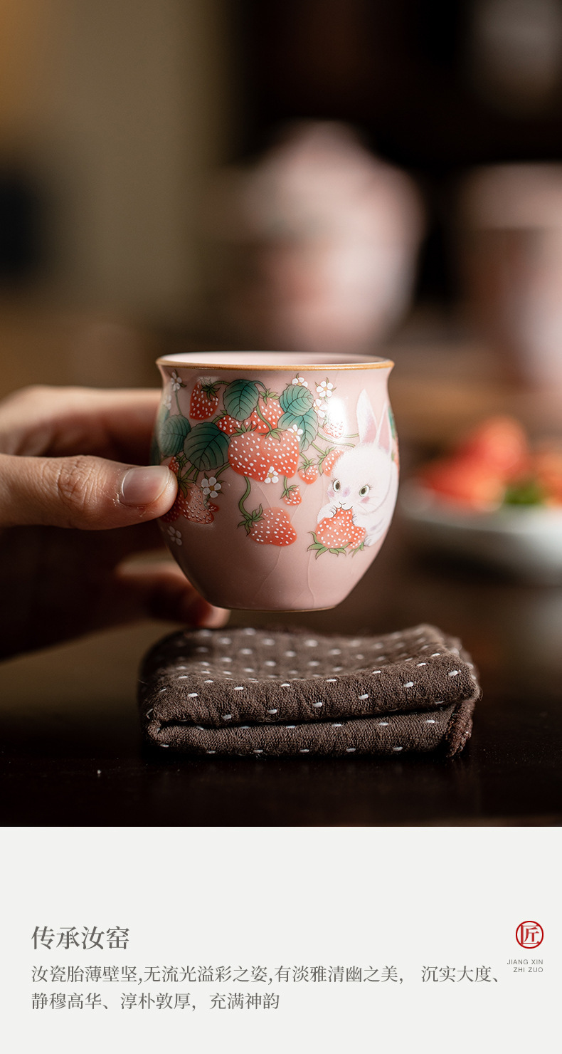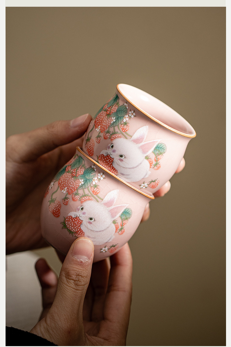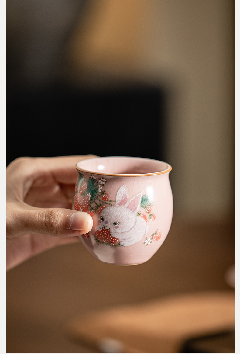 イチゴのウサギの汝窯のお茶の杯の腰の杯の陶磁器のアイデアの高級なピンクの開片は大きいサイズの主人の杯のお茶の杯を養うことができます。