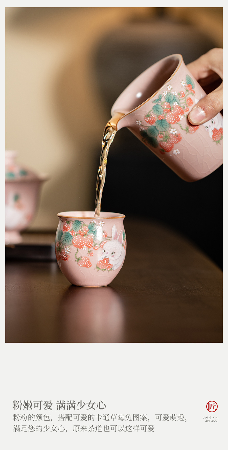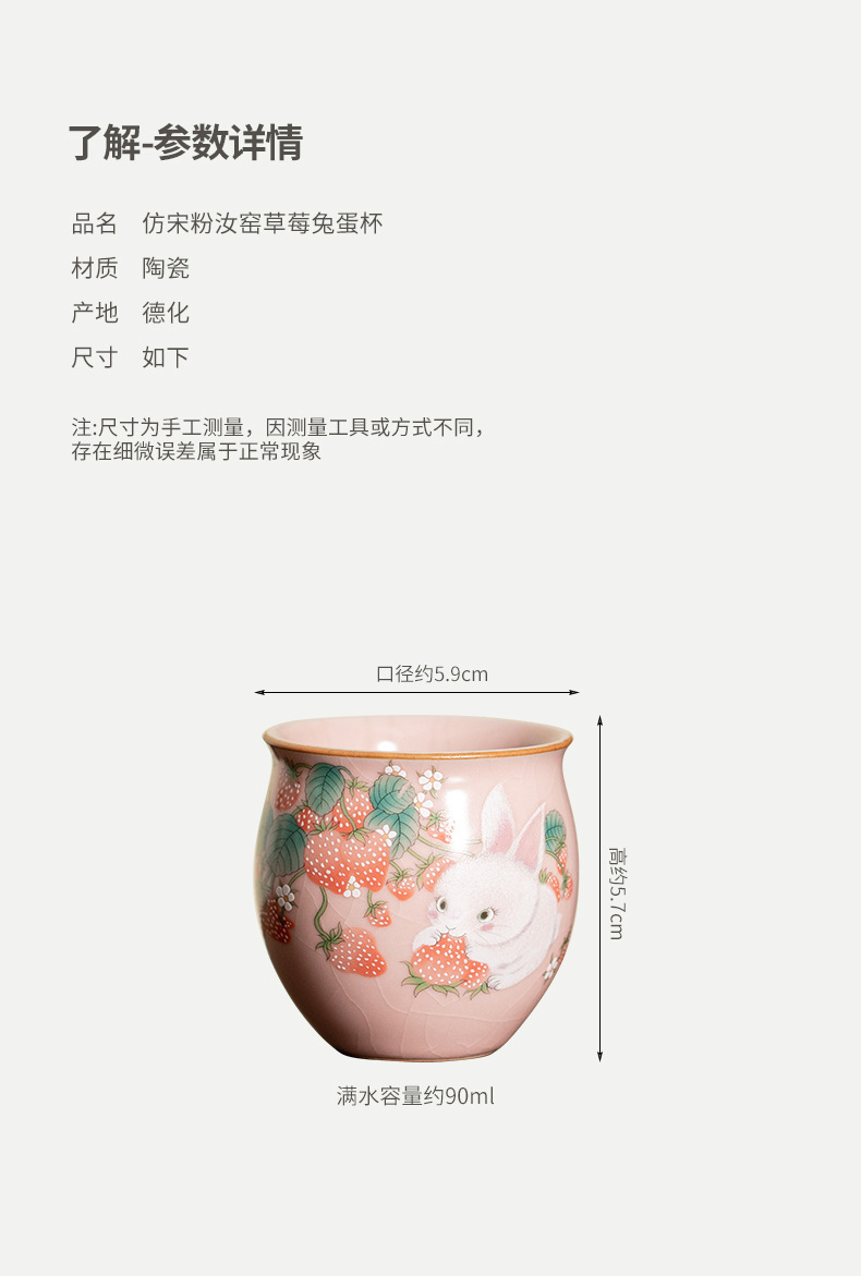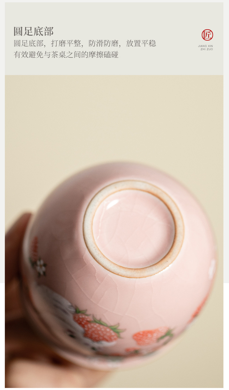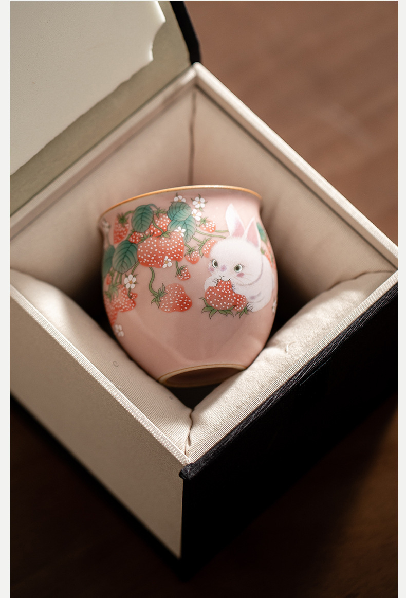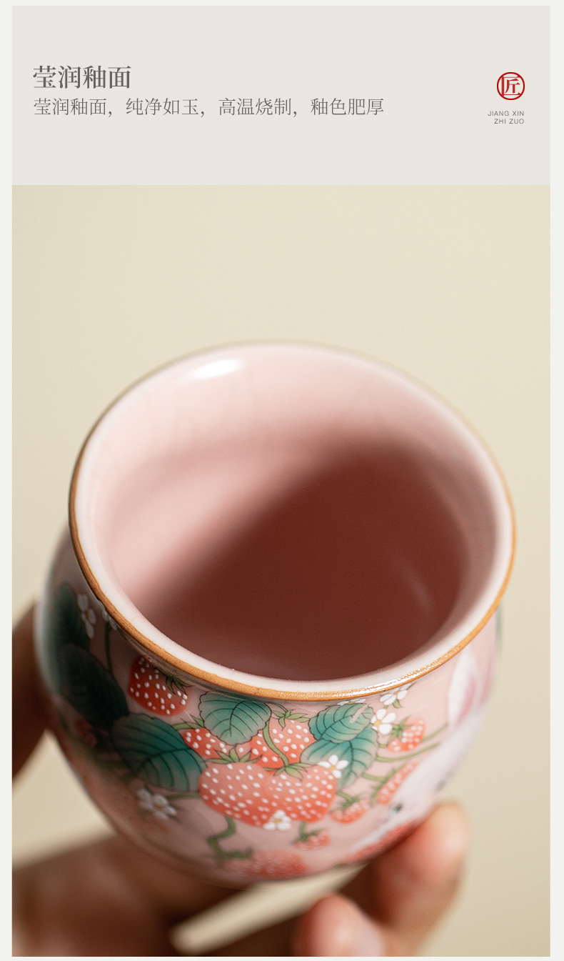 イチゴのウサギの汝窯のお茶の杯の腰の杯の陶磁器のアイデアの高級なピンクの開片は大きいサイズの主人の杯のお茶の杯を養うことができます。