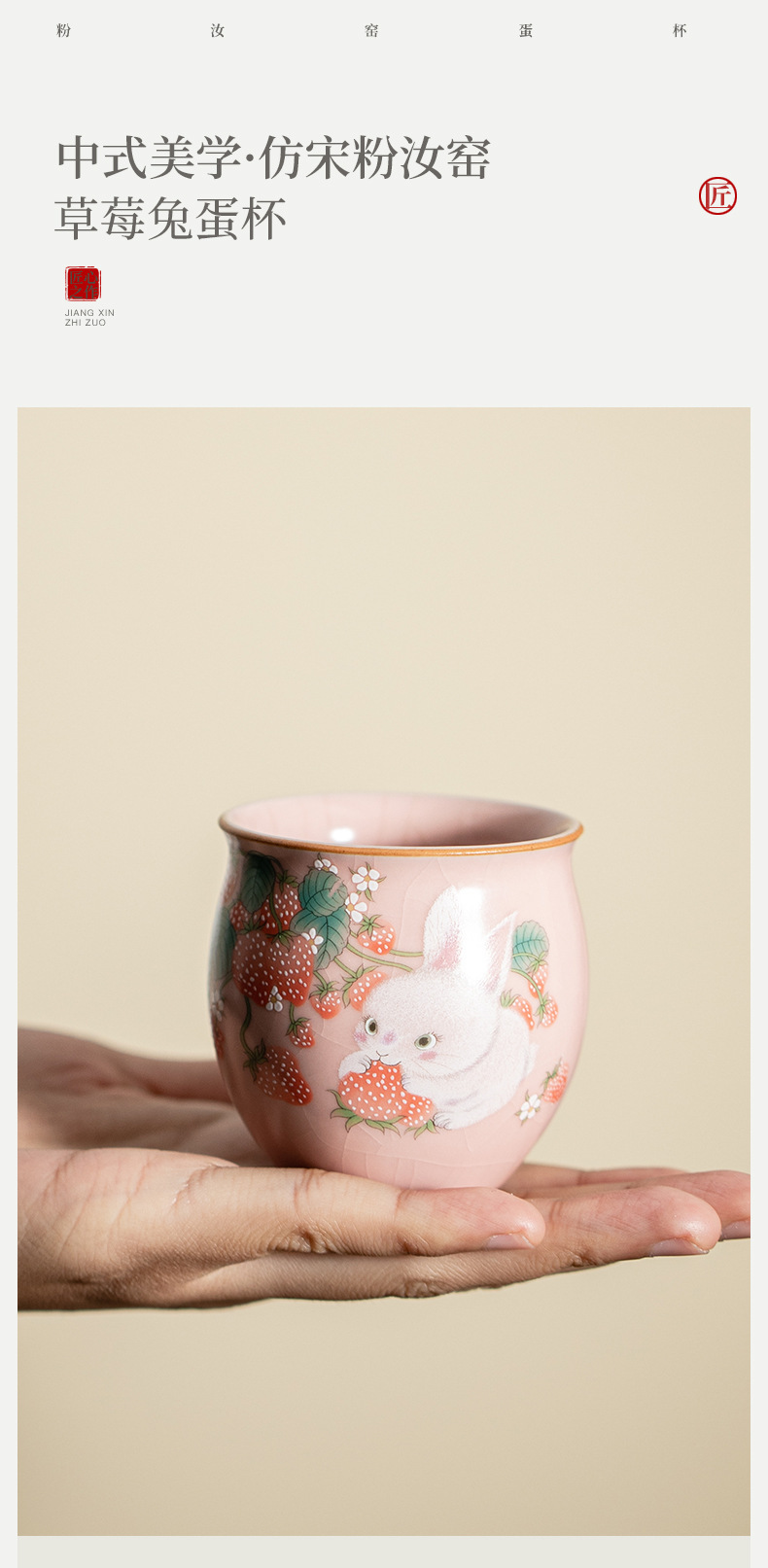 色分類 汝窯粉-いちご兎卵カップ