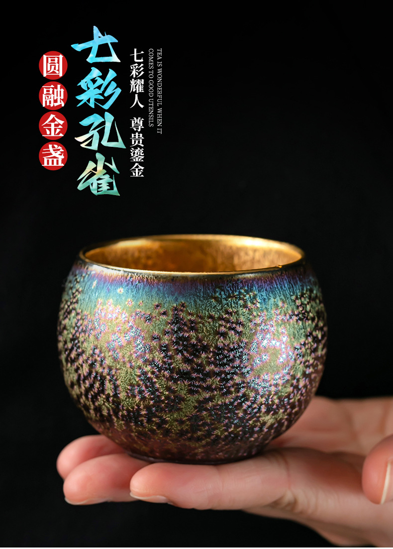 手作りの金色の滴の七色の鉄の胎金の天目の茶の杯の純度の金の陶磁器の主人の杯の金杯の杯の単一の贈り物の箱