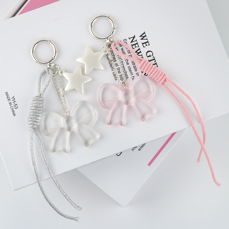 清新で甘いins風粉銀の2色の透明な蝶結びの星の鍵は縄を掛けます。