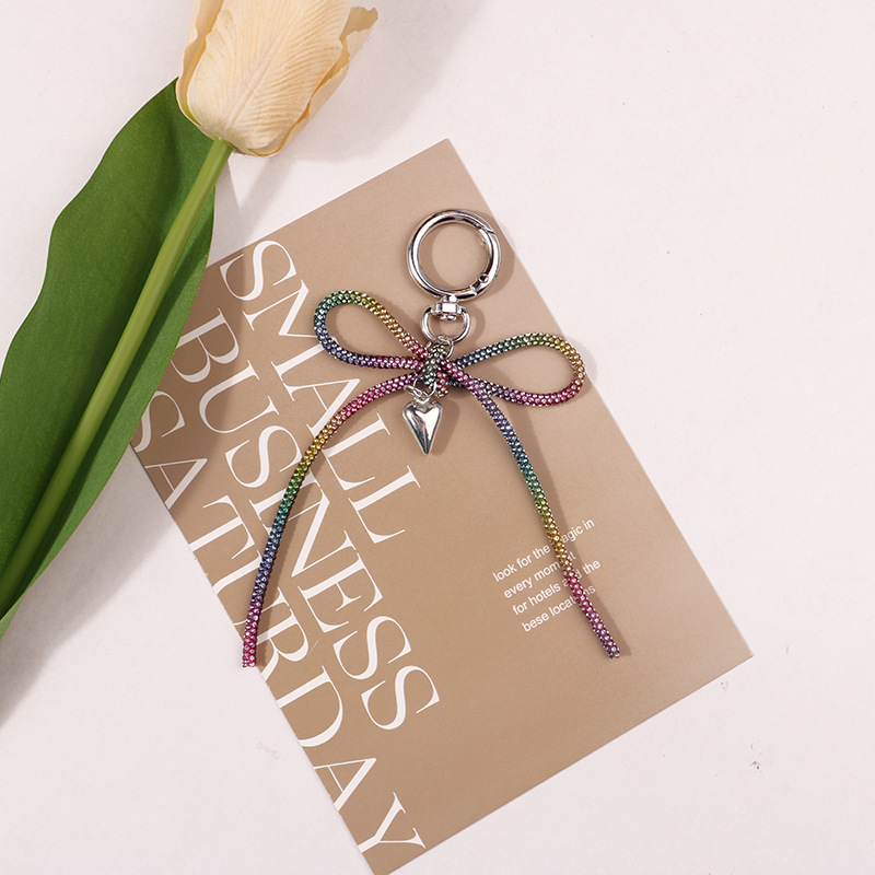 新商品のダイヤモンドの蝶結びのキーホルダーの部品のファッション的な雰囲気がいっぱいです。