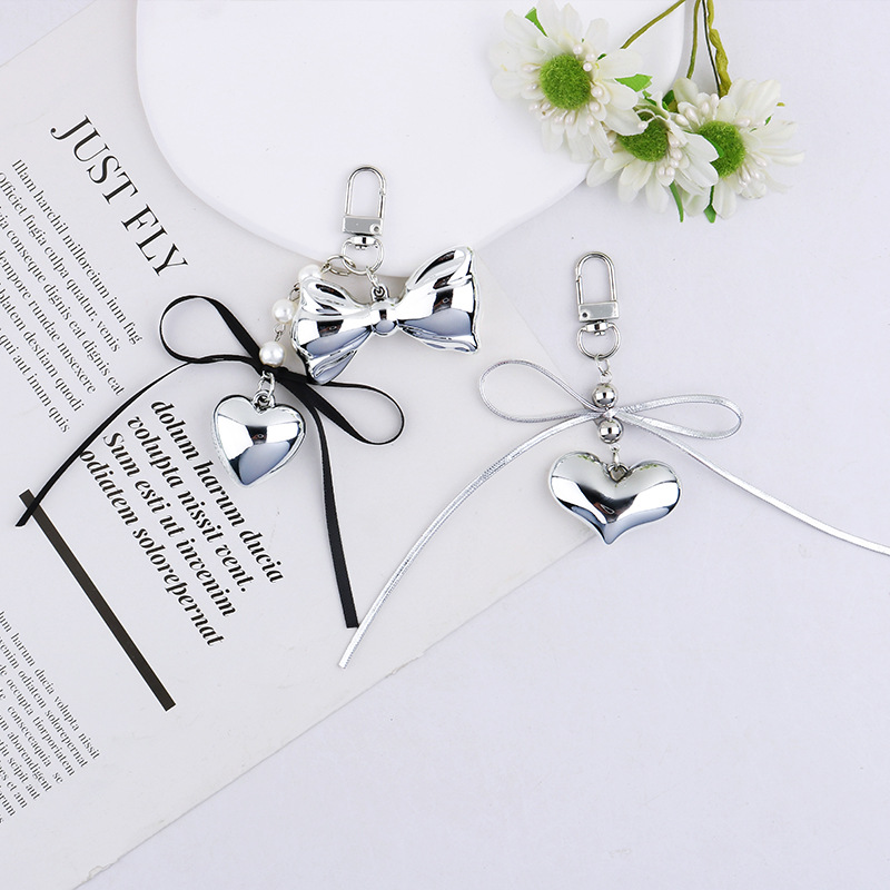 新商品創意シンプルデザイン樹脂銀色蝶結び立体愛合金キーホルダー