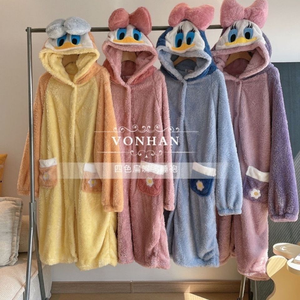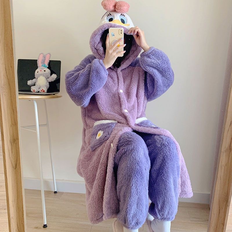 パジャマの女性は秋冬にベルベットのベルベットの長いタイプの唐老鴨の寝衣のパジャマの学生のバスローブを厚くして着ることができる