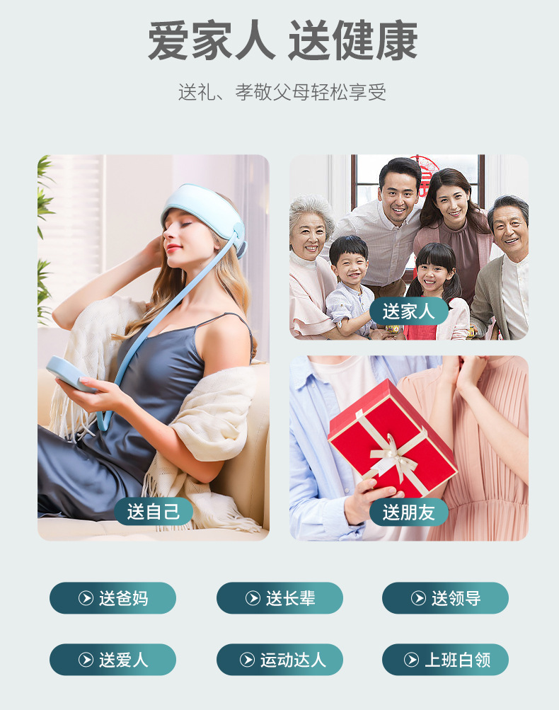 奥克斯头部按摩器头眼一体式按摩睡眠仪热敷眼部舒缓疲劳家用神器