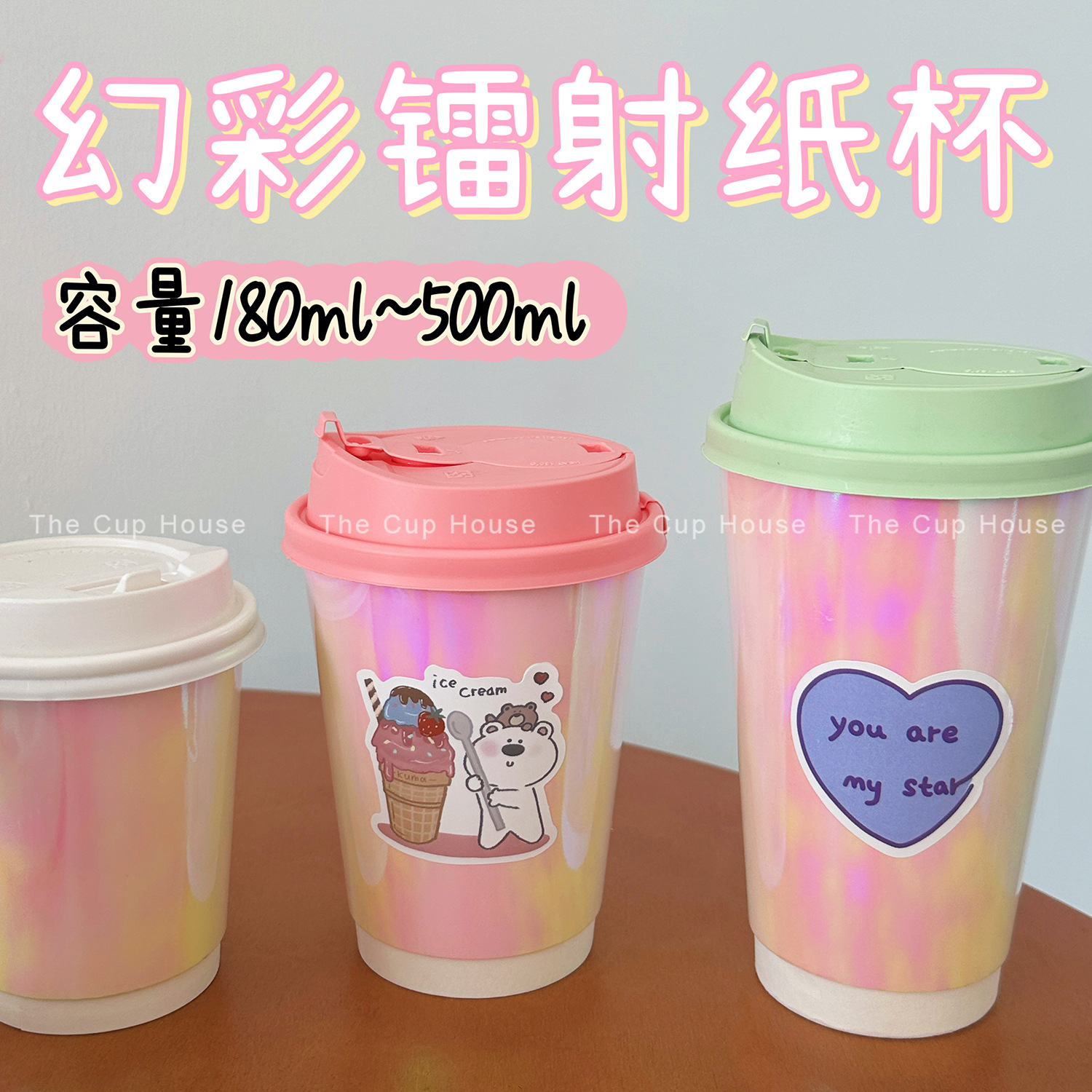 幻彩紙コップ使い捨てコーヒーカップミルクティー紙コップ厚いレーザーピンク紙コップ冷たい飲み物カップ
