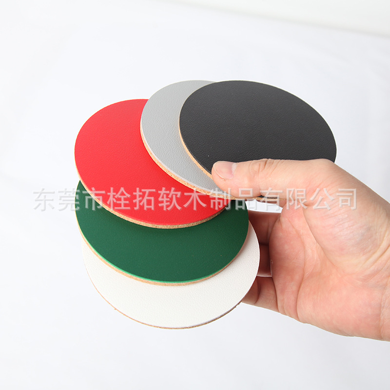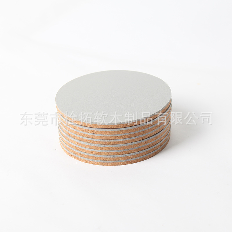 現物卸売り円形pu皮革カップマット家庭用キッチン厚い断熱マット天然コルクコーヒー茶カップマット