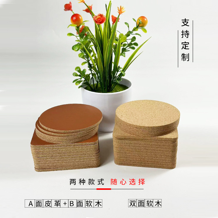 現品コルク皮革コースター円形正方形コルクマット環境保護食マット皮革コースターはロゴを印刷できます。