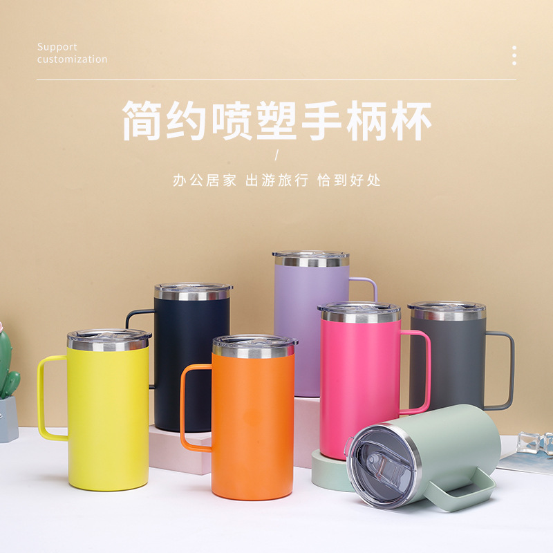 クロスボーダー20オンスハンドル付きマグカップ304ステンレス真空保温カップ大容量携帯スプレーコーヒーカップ