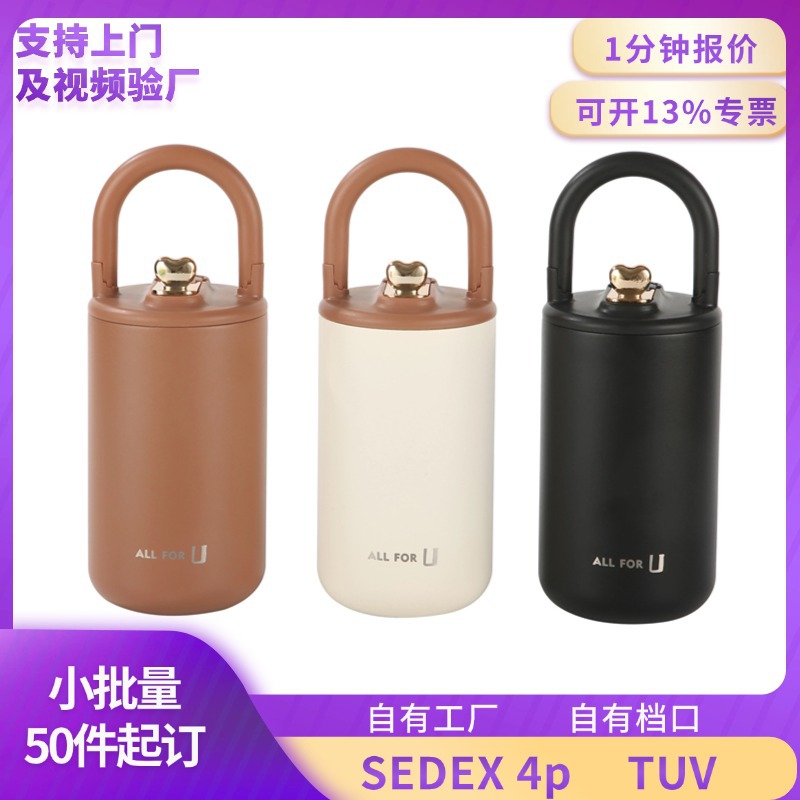 かわいい女の子の手持ち保温カップストロー付き携帯屋外コップ304ステンレス二重真空保温カップ
