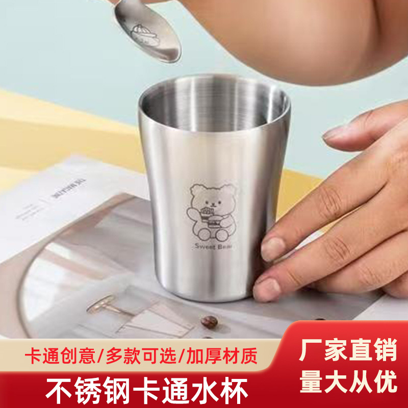 跨境304不锈钢水杯家用可爱萌趣加厚防烫防摔杯子高颜值洗漱水杯