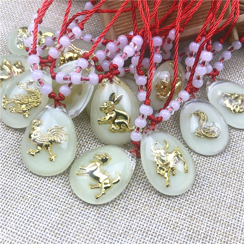男女の十二生肖の夜光のネックレスの本命年の学生の子供の発光の赤い縄のペンダントは金の玉をまねます。