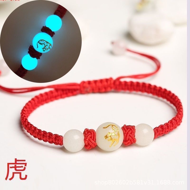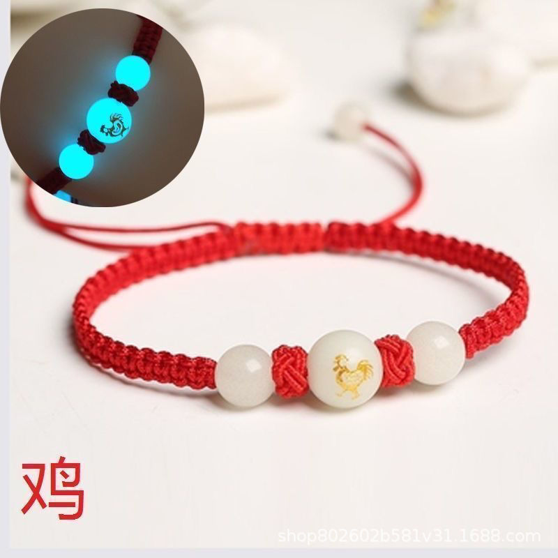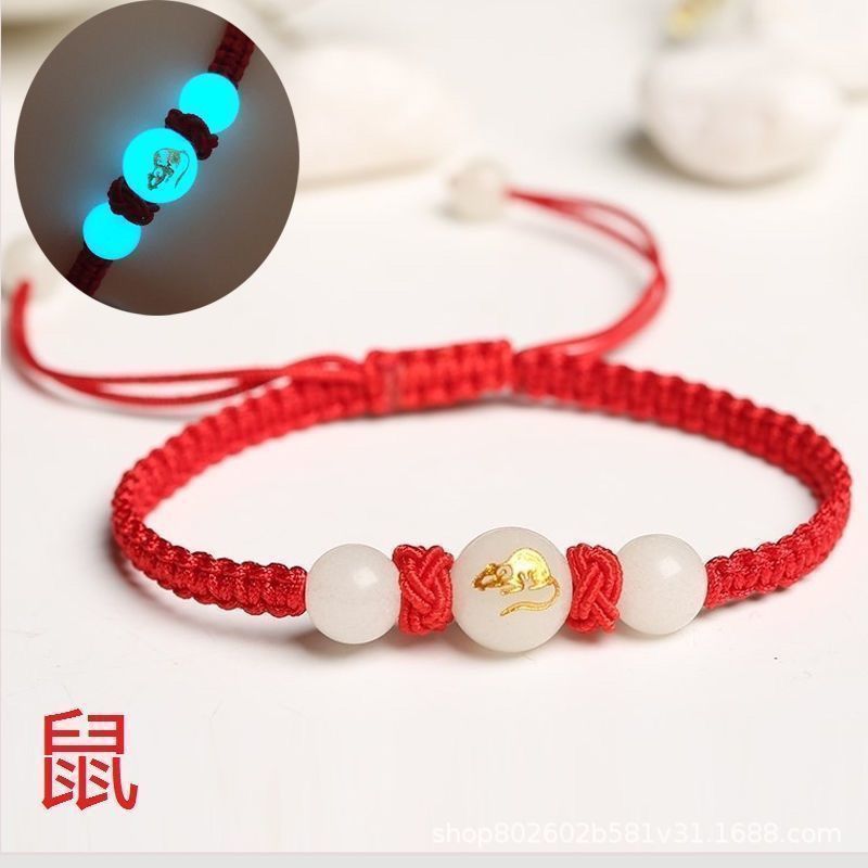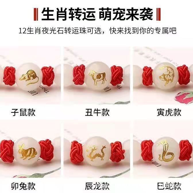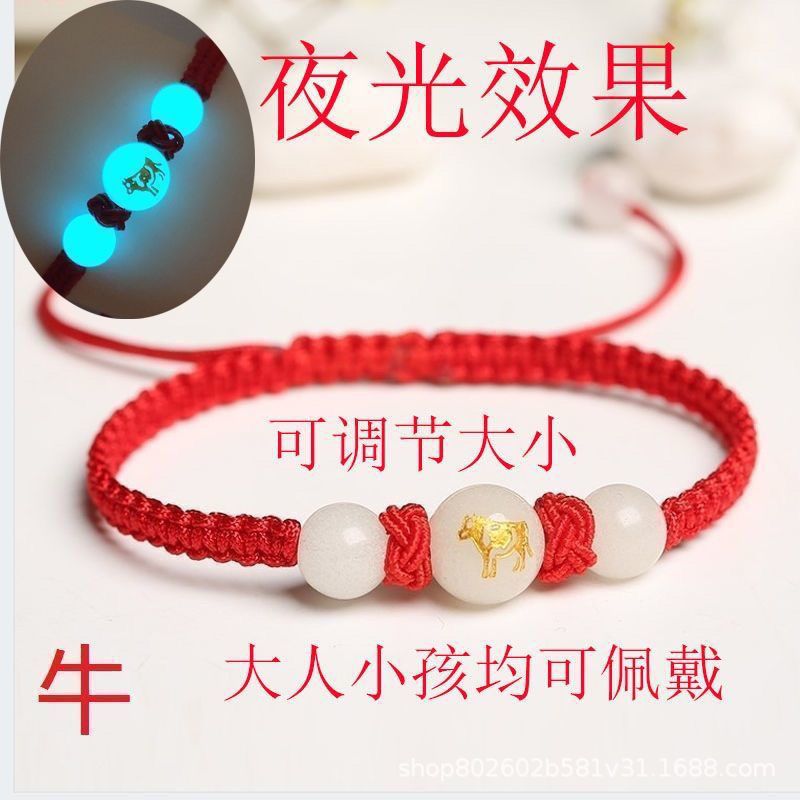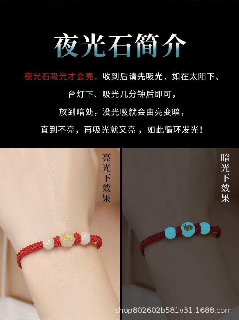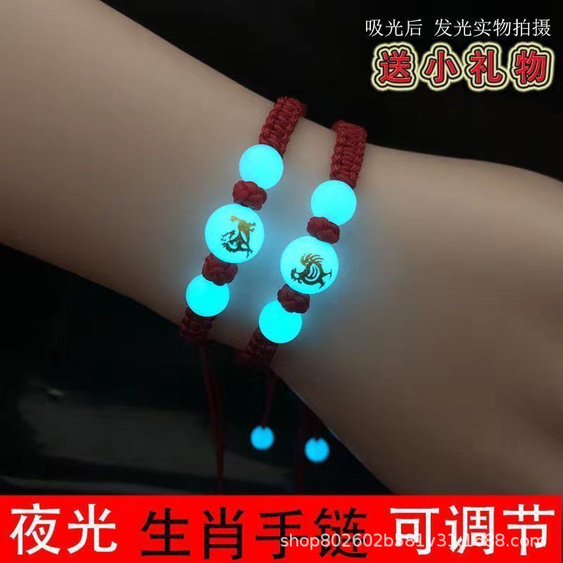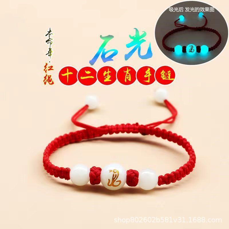 十二生肖夜光石红绳手链情侣款发光烫金生肖花开富贵五行转运批发