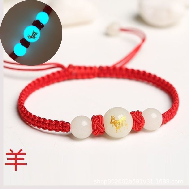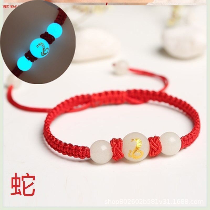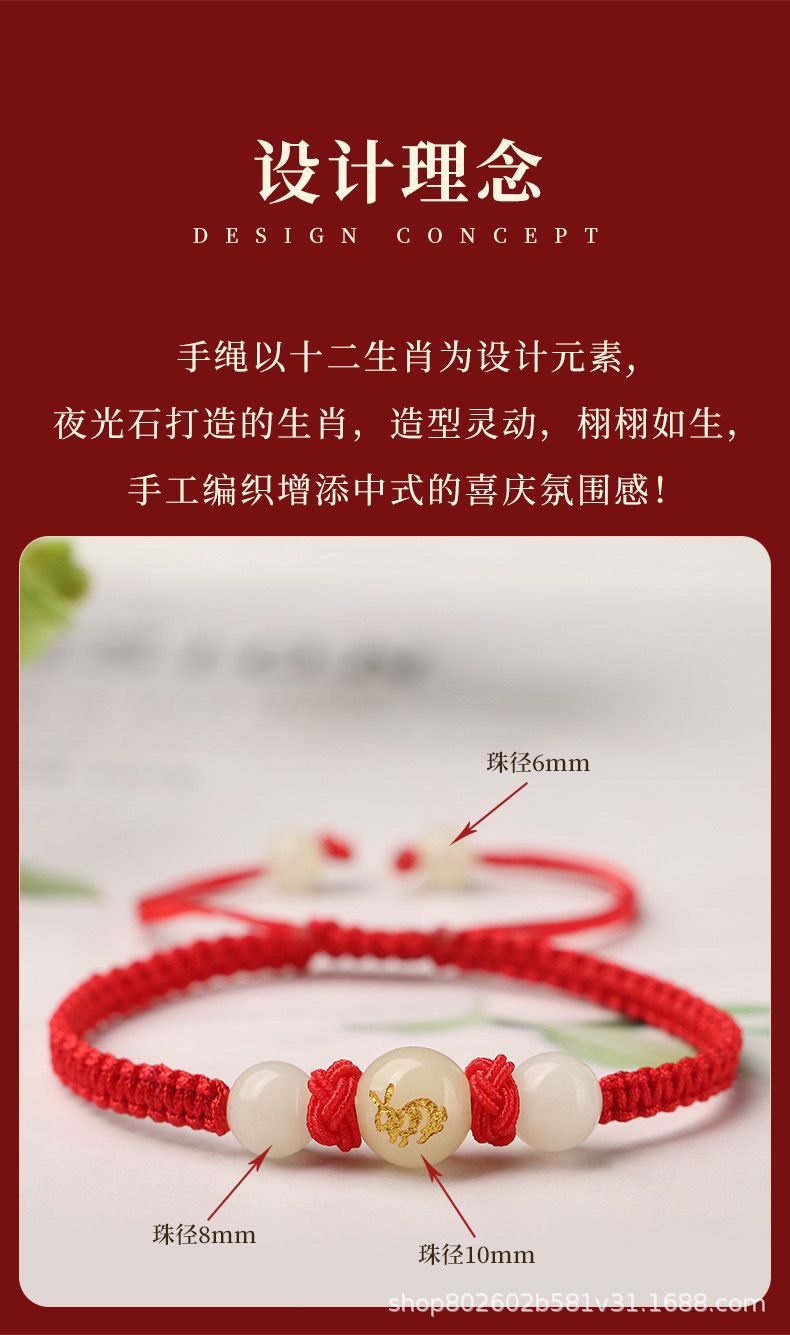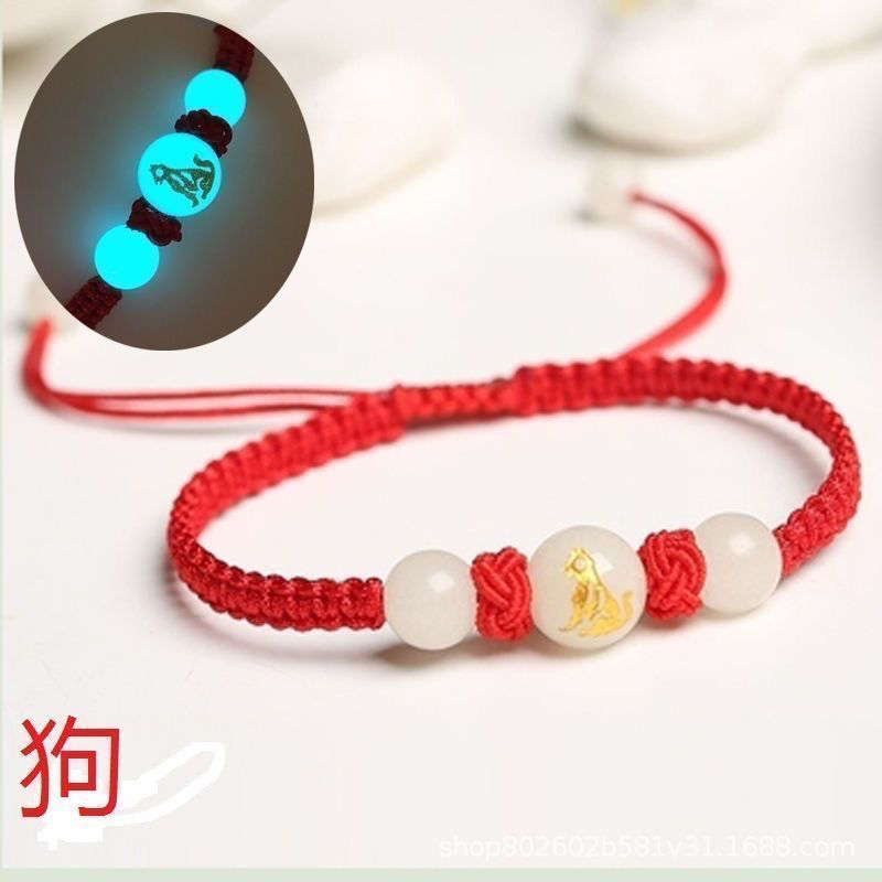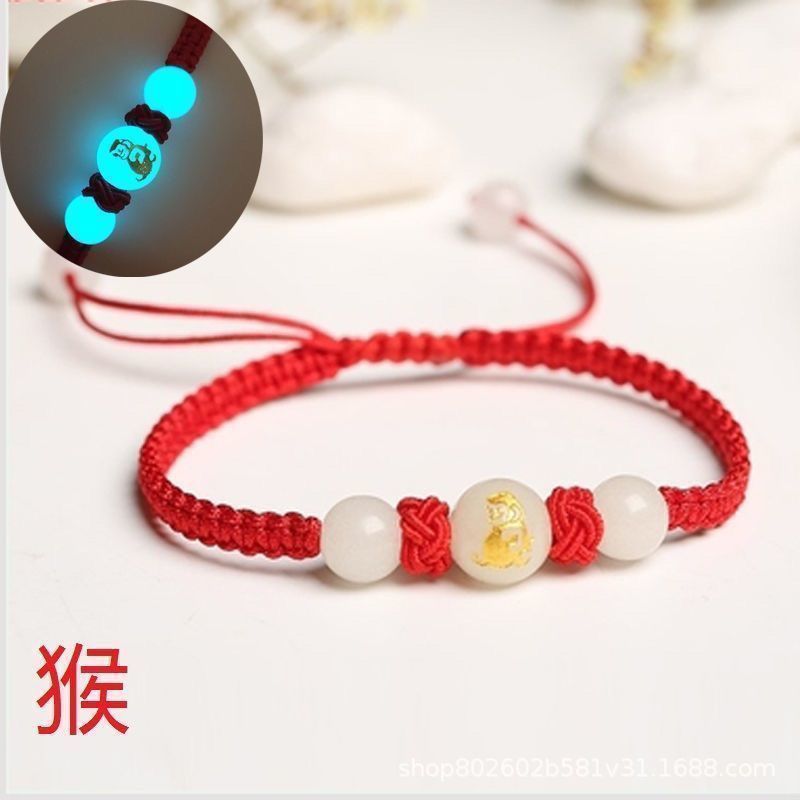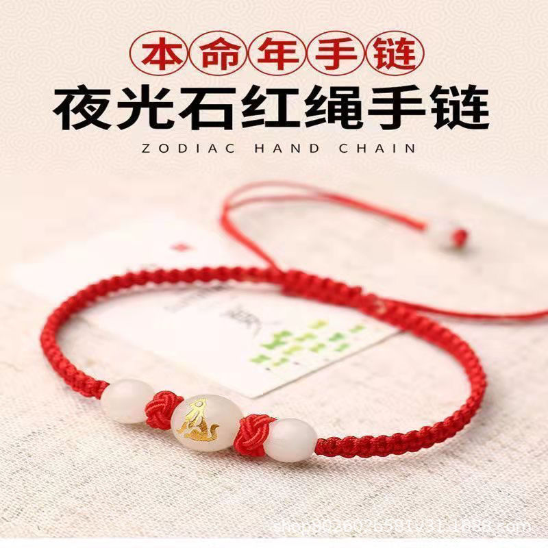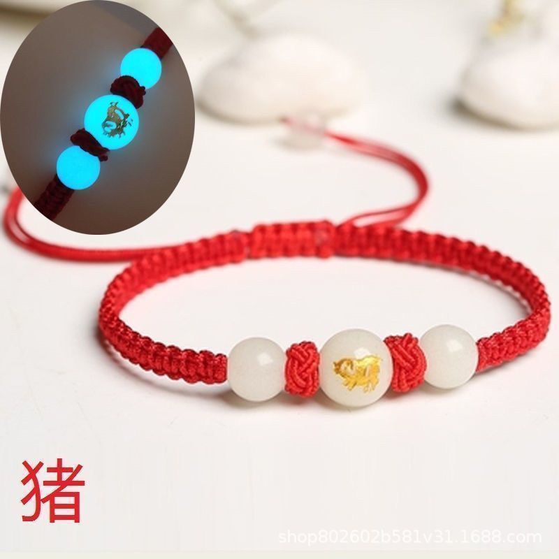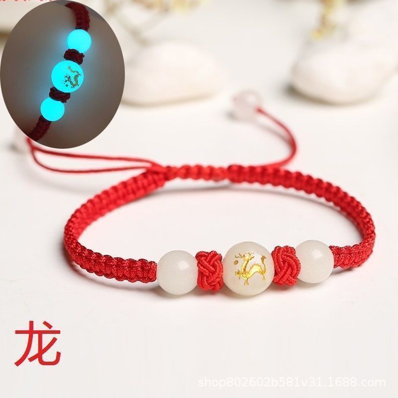 十二生肖夜光石红绳手链情侣款发光烫金生肖花开富贵五行转运批发