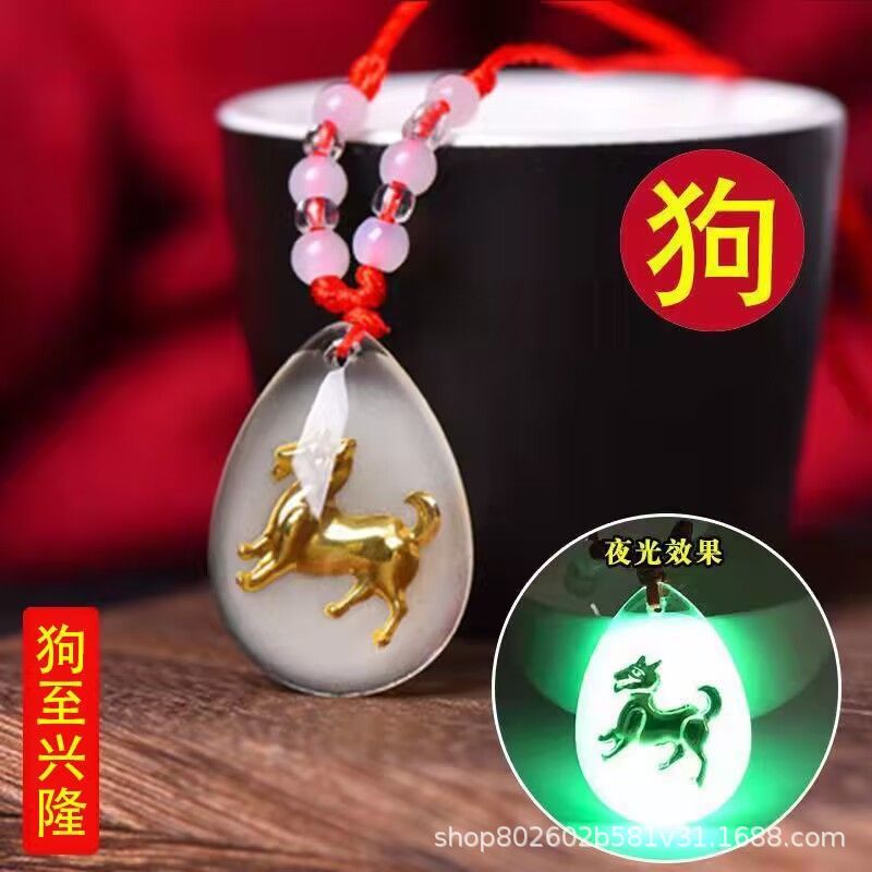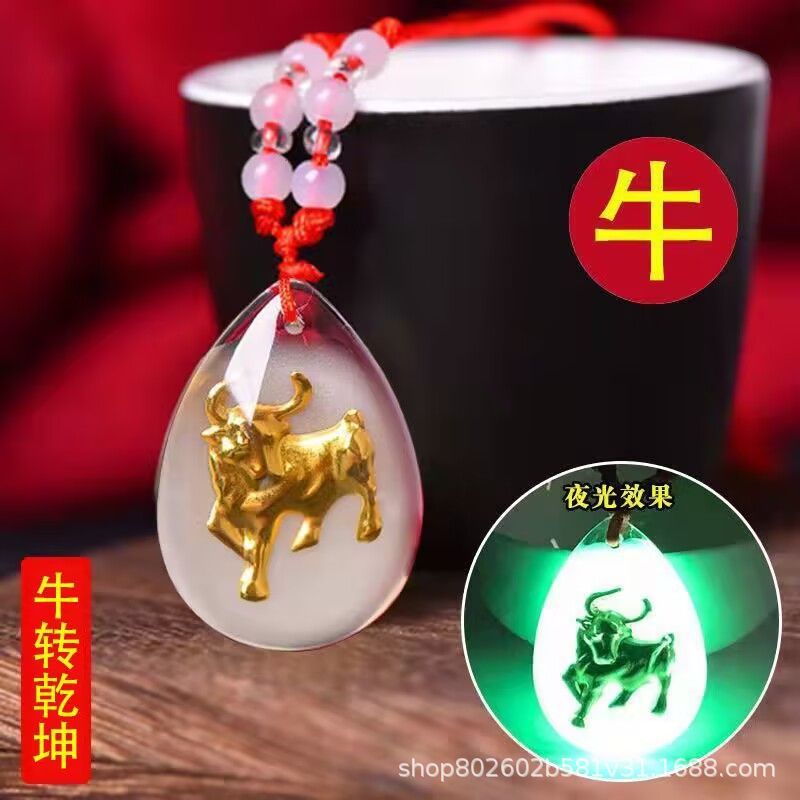 夜光十二生肖ペンダント結晶金夜光観音仏生肖ネックレス水晶装飾金メーカー直販