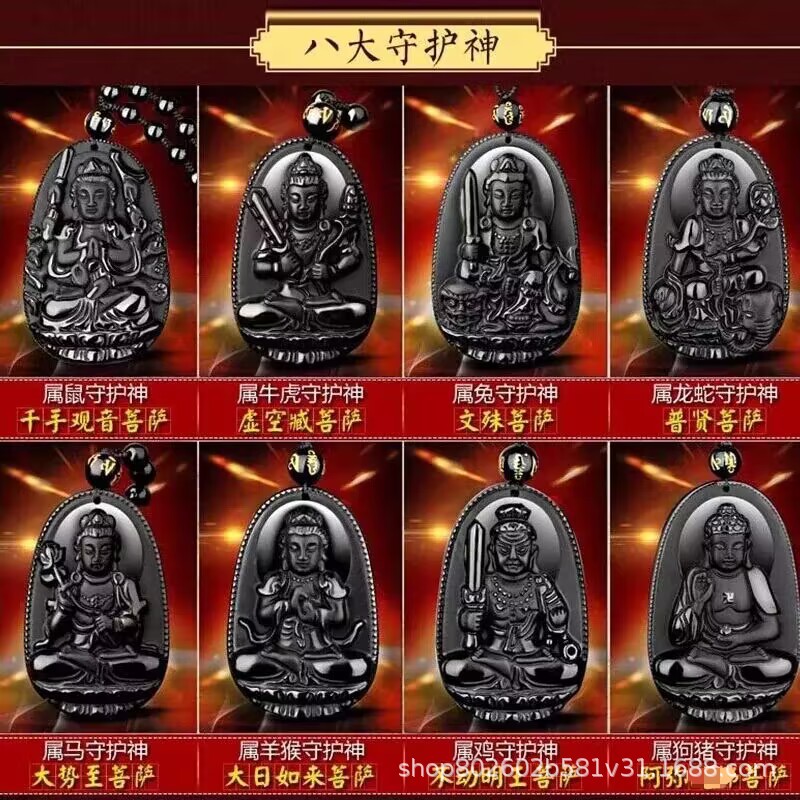 天然黒曜石本命仏ペンダント十二生肖八大守護神虚空蔵観音仏像男女ネックレス