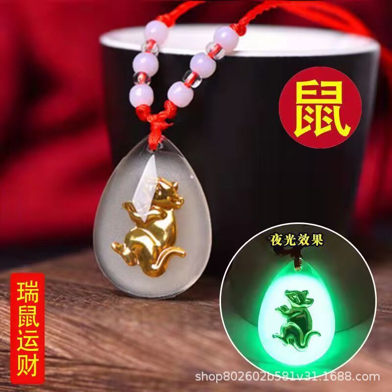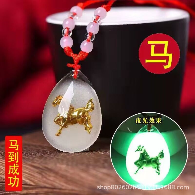 水晶は金の夜光の十二生肖のペンダントを入れます。