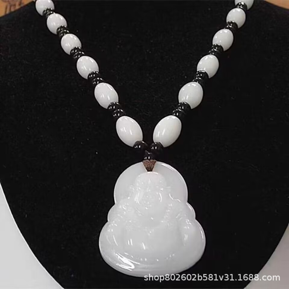 新商品の高級仏陀観音は白玉のペンダントをまねて弥勒仏陀の笑仏ガラスの本命仏のネックレスの男女のカップルの金を掛けます。