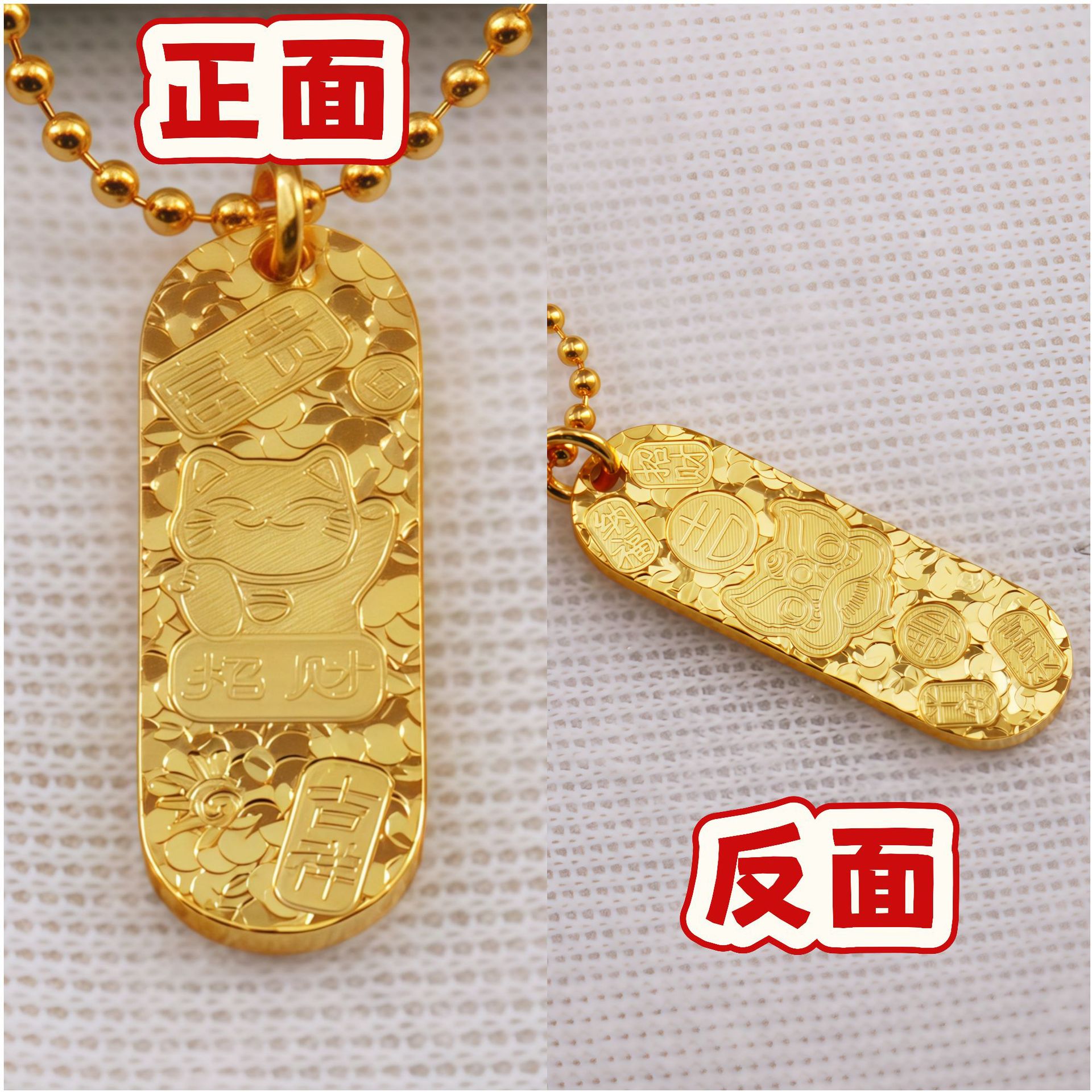 新中式吉言吉语金条项链女爆闪碎冰冰潮牌招财平安颈链新年送礼物