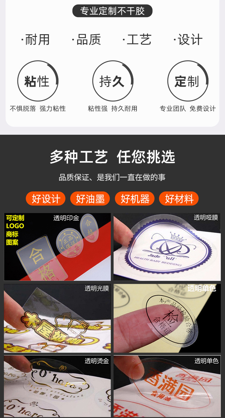 Uv転写シール水晶シールフィルム留字ラベル印刷シルクマーク立体感圧シール箔押し水晶マーク