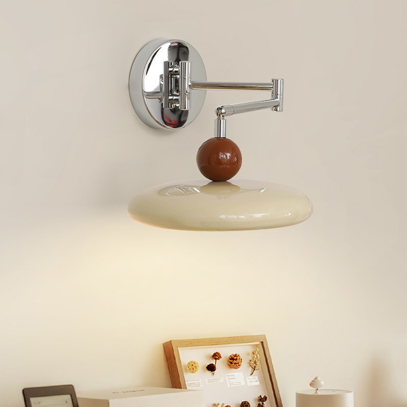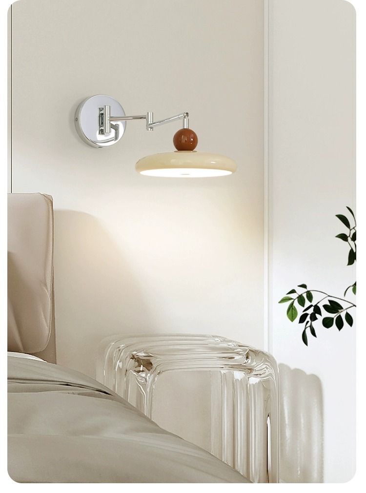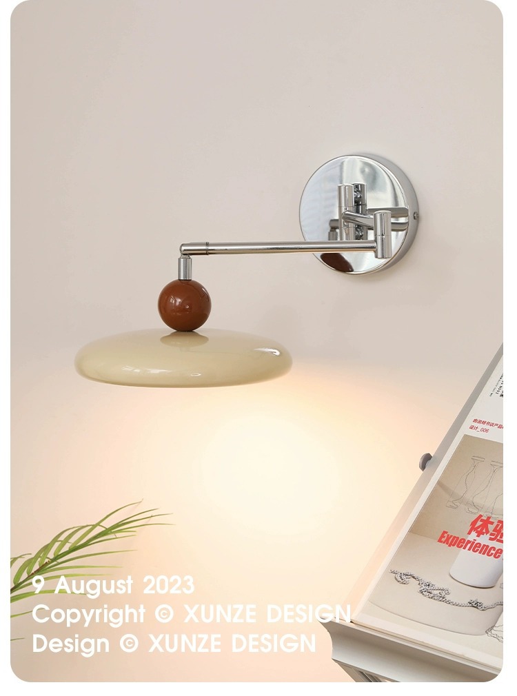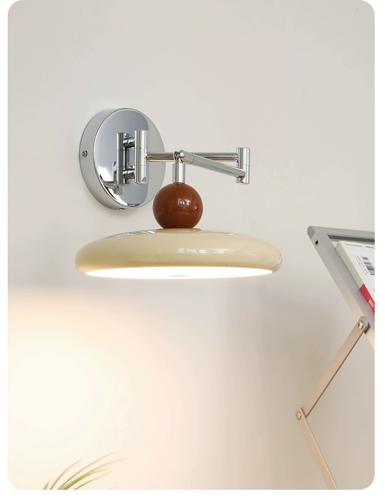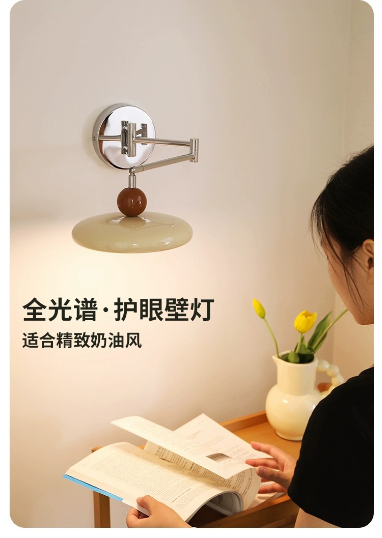 寝室のベッドサイドウォールランプバウハウスリビングルームウォールランプクリームスタイル北欧クリエイティブ格納式研究読書ロッカーランプ