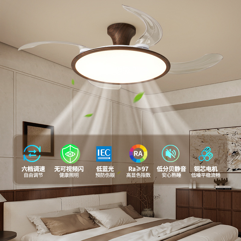 新型中国風雲霧ファンランプ超薄型ステルス保護アイランプリビングルームレストラン寝室超静音扇風機ランプ